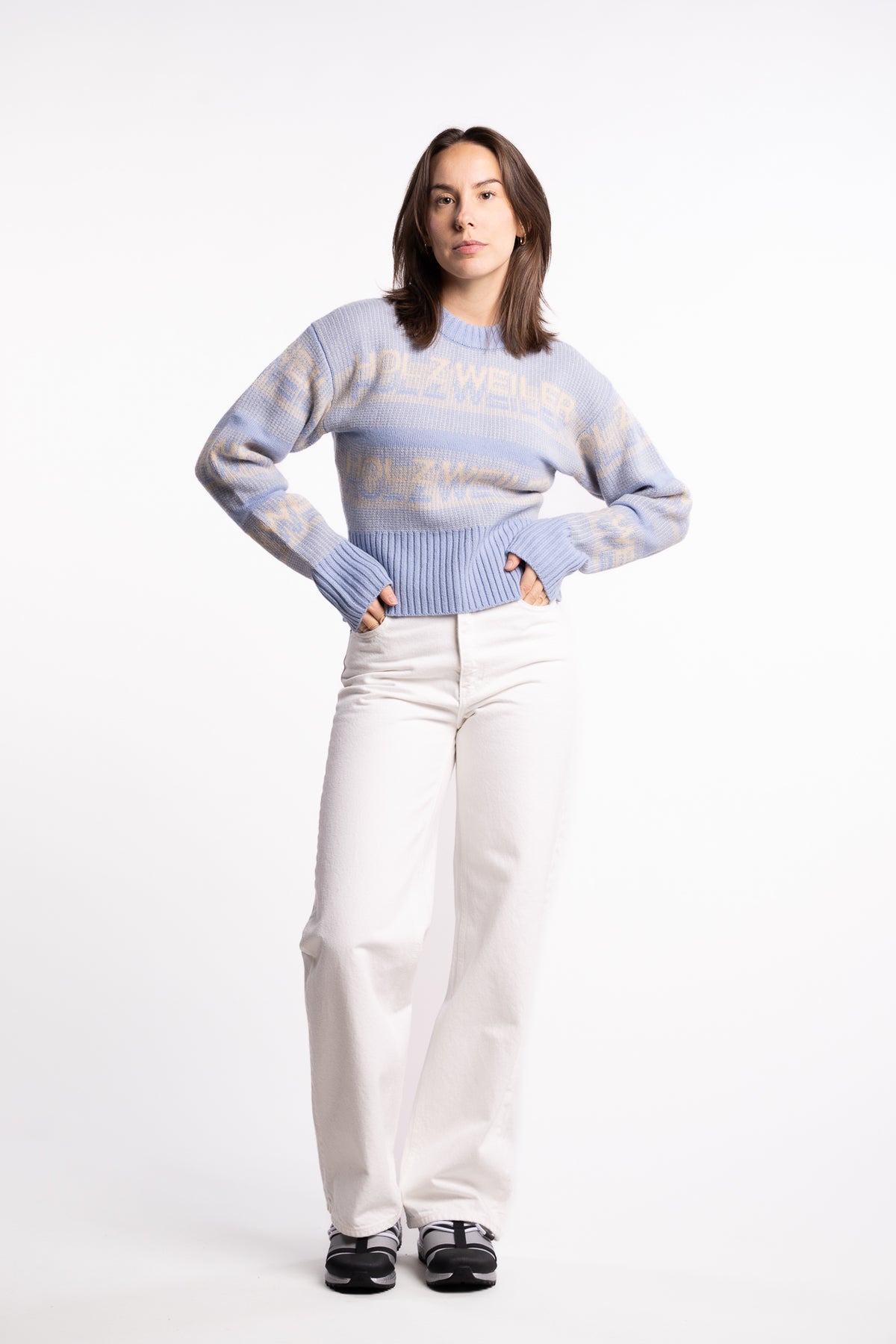 Ski Cropped Crew fra Holzweiler er en moderne versjon av den klassiske ullgenseren. Laget i 100 % ull med jacquardmønster, har den et kort og avslappet snitt med rund hals og ribbede kanter. En lett, varm og pustende genser som kombinerer komfort med et tidløst uttrykk – perfekt til både hverdag og fritid.