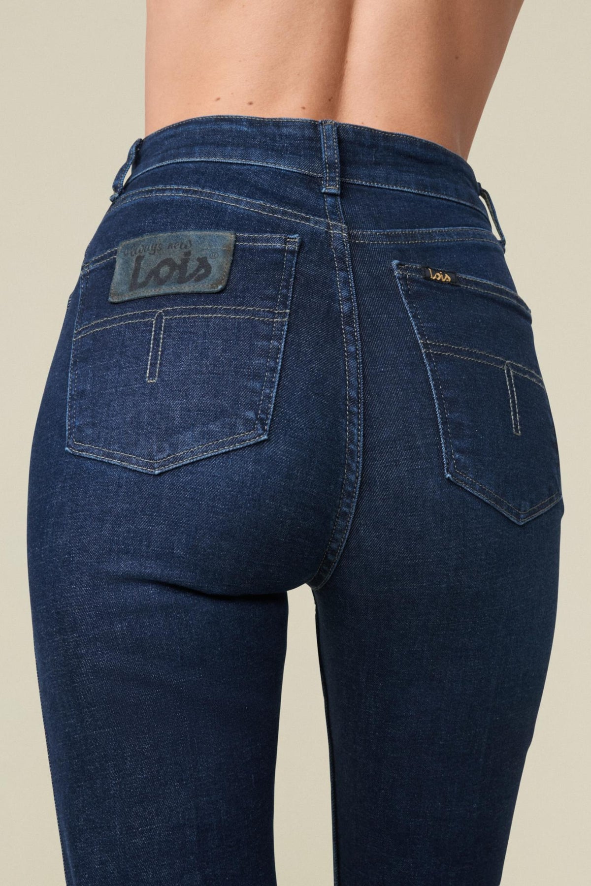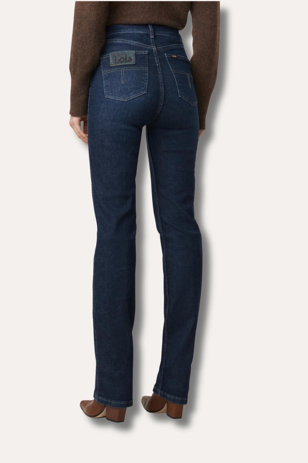 Ria fra Lois er en jeans med rett passform og høyt liv, laget i en stretchy denim som kombinerer komfort og stil. Modellen har en klassisk, rett silhuett som gjør den til et tidløst baseplagg, og er ferdigstilt med Lois sin ikoniske vintage-skinnpatch på baklommen. Produsert i Spania i en dyp Celtic Darkness-vask som gir et moderne og anvendelig uttrykk.