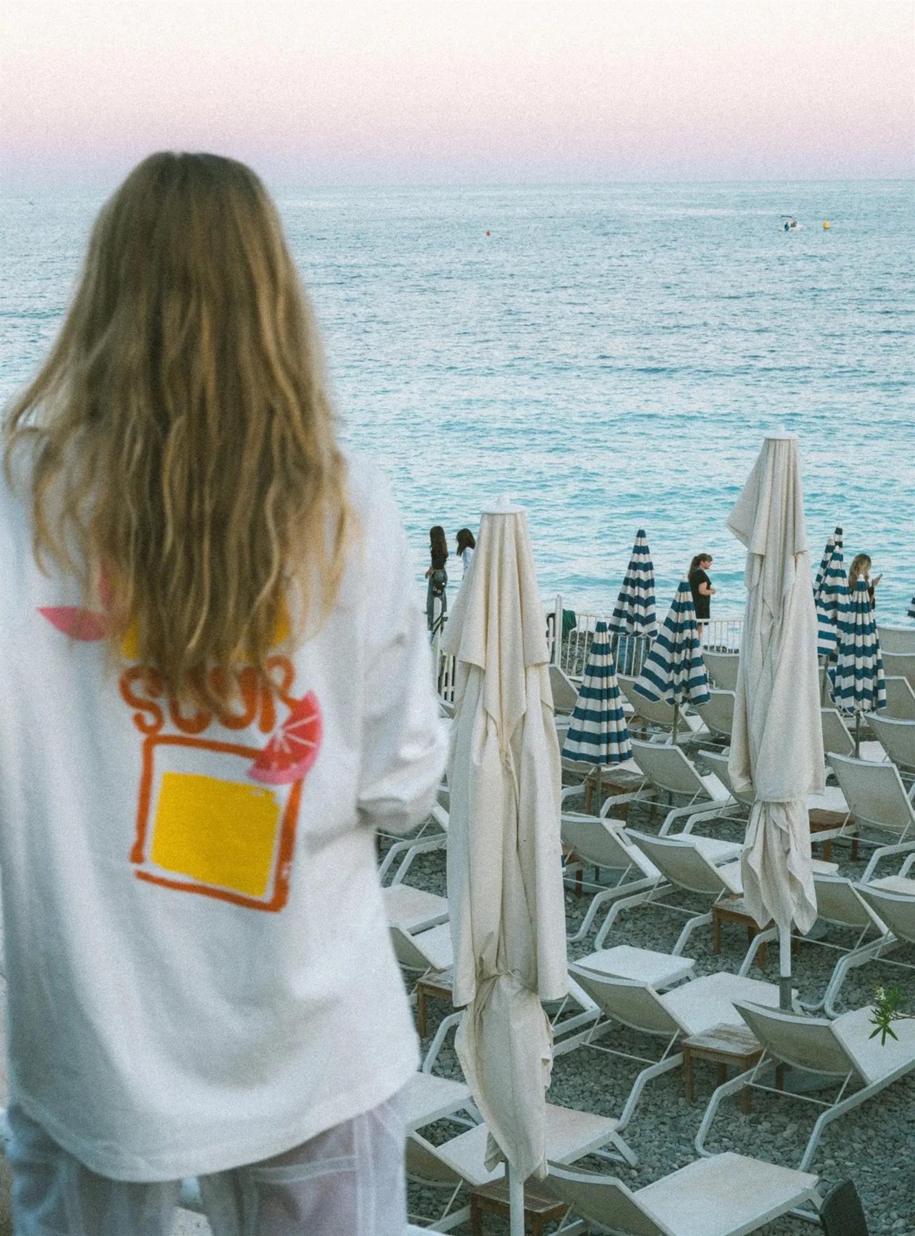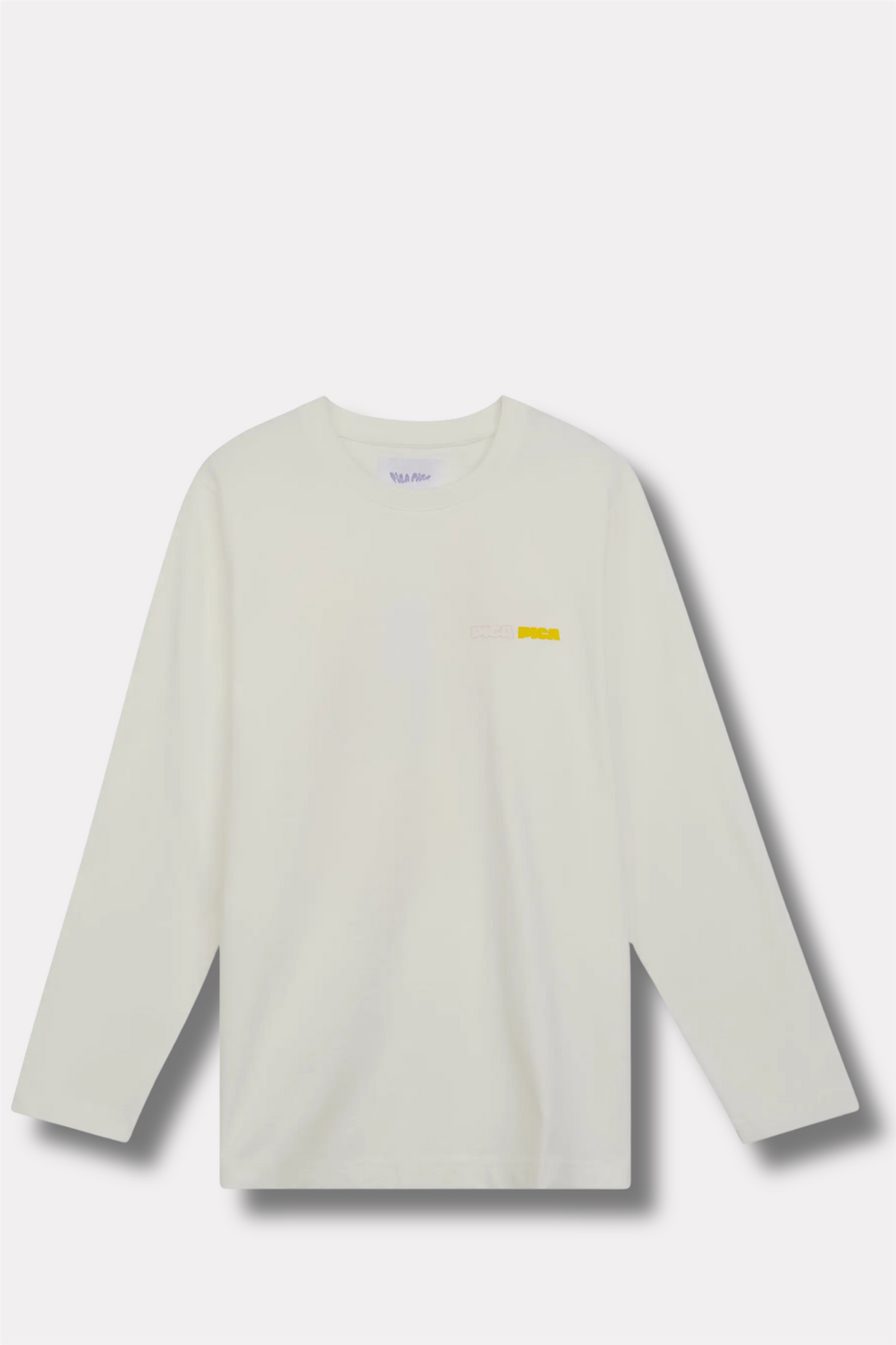 Tuto Sour Longsleeve fra Pica Pica i hvit bomull med fargerikt cocktail-trykk på ryggen og diskret logodetalj foran. Klassisk passform med lange ermer og tung bomullskvalitet.