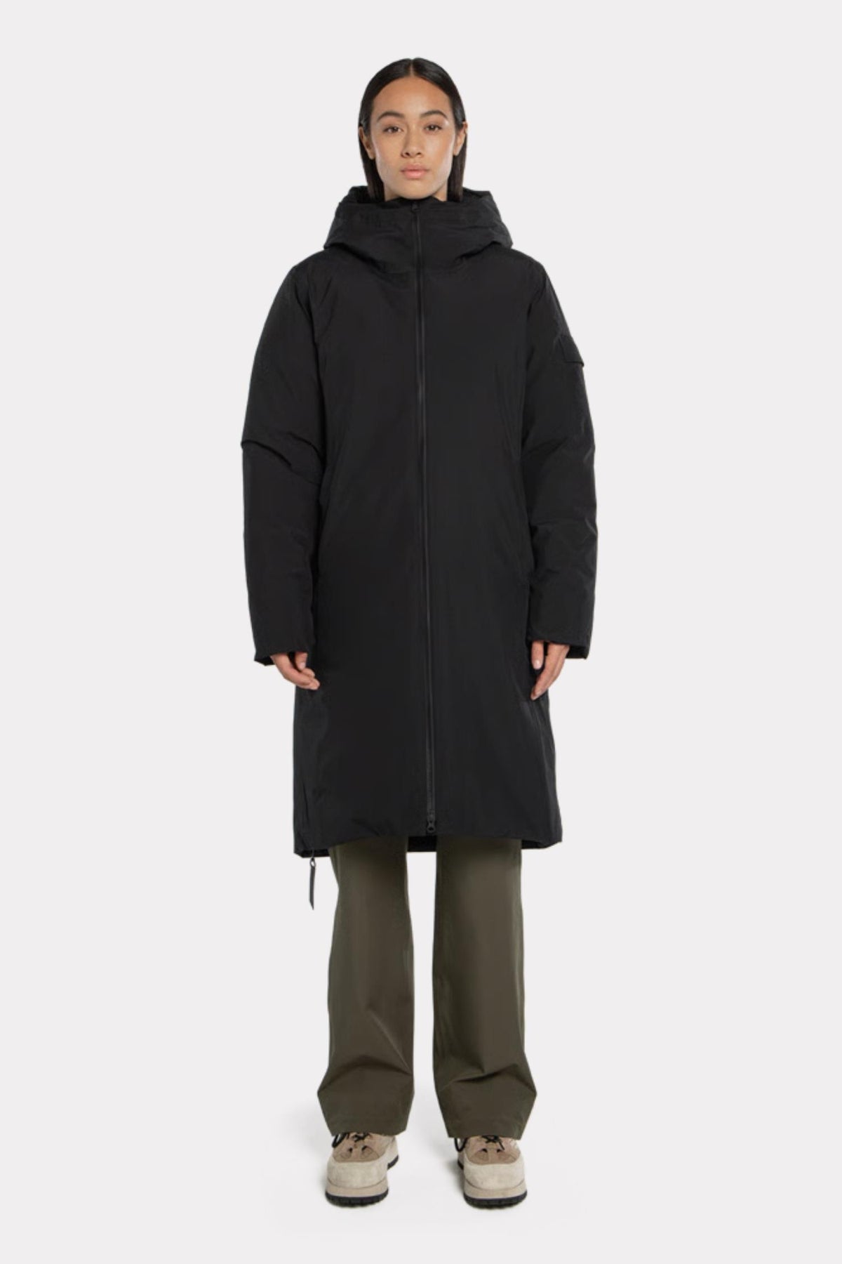 Bjorli Down Coat fra BLÆST er en vinterkåpe designet for å holde deg både varm og tørr, uansett vær. Fylt med 700 fill power dun (RDS-sertifisert) og med en vannsøyle på 20.000 mm, kombinerer den høy isolasjonsevne med en vanntett, pustende konstruksjon. Yttermaterialet er laget i 100 % resirkulert polyester med Care Tech Pro 2-lags stoff og TPU-laminering, mens teipede sømmer sørger for full beskyttelse mot vær og vind.
