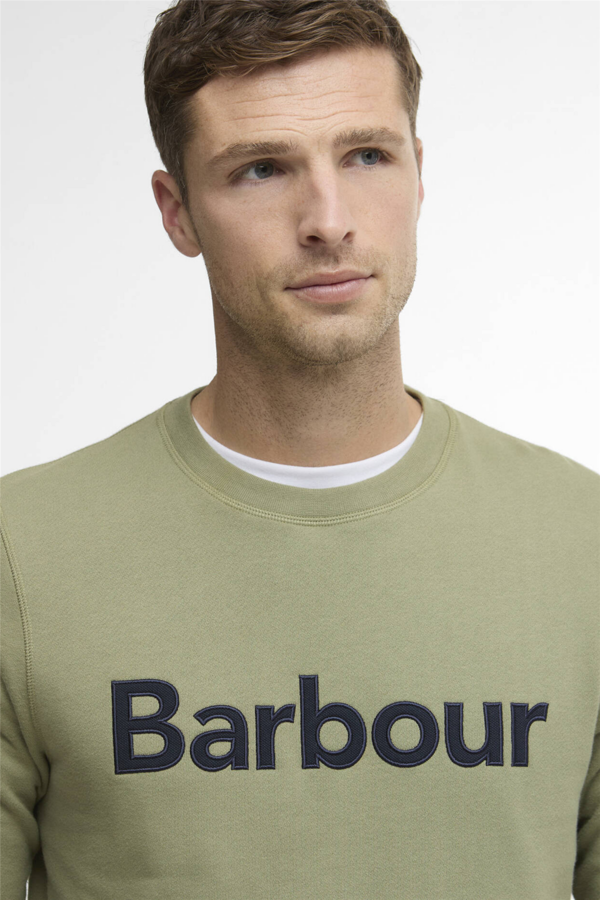 Barbour Pique Applique Crew Sweatshirt i Laurel Green er en stilren genser med preppy uttrykk. Laget i lett bomullsblanding med børstet innside, crewneck og lange ermer. Den klassiske Barbour-logoen i vintage cornelli-sting på brystet gir et subtilt og elegant preg.
