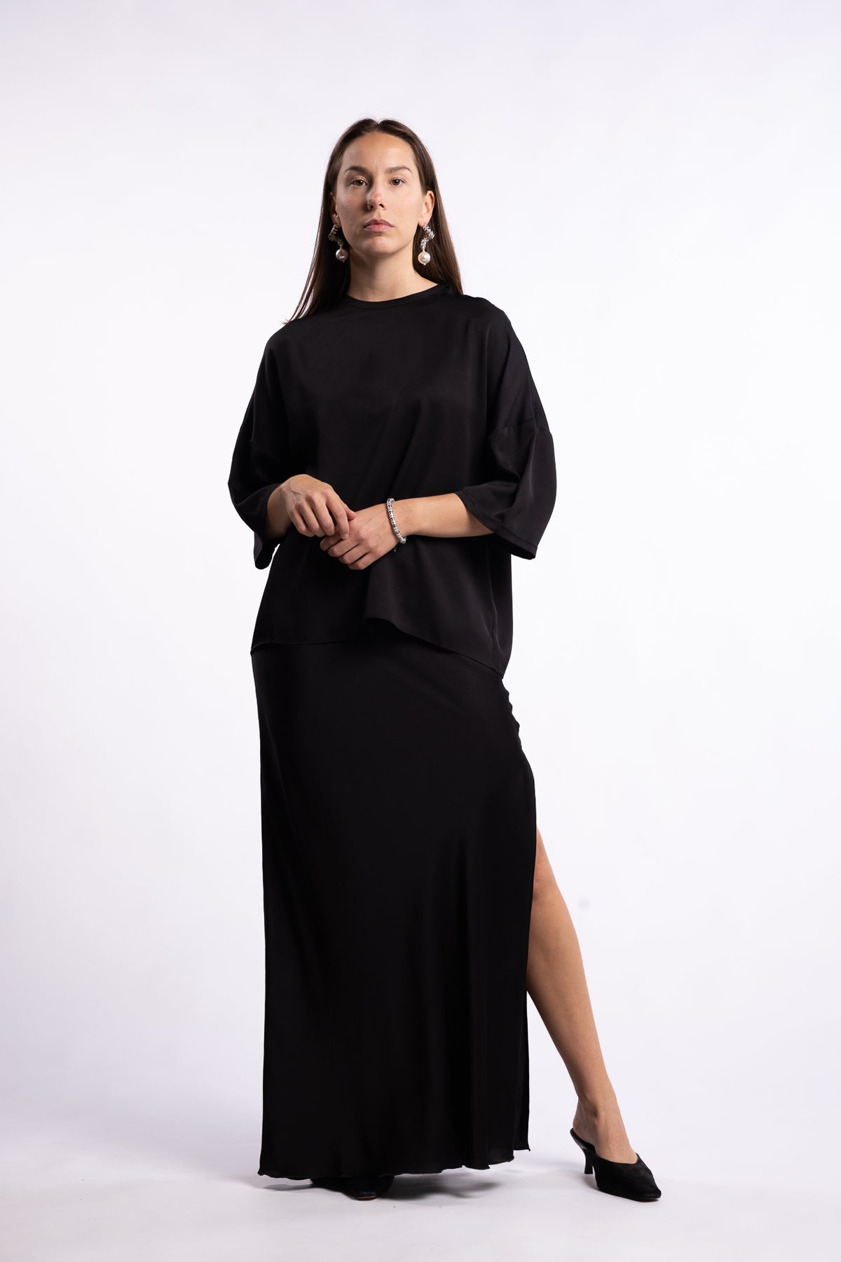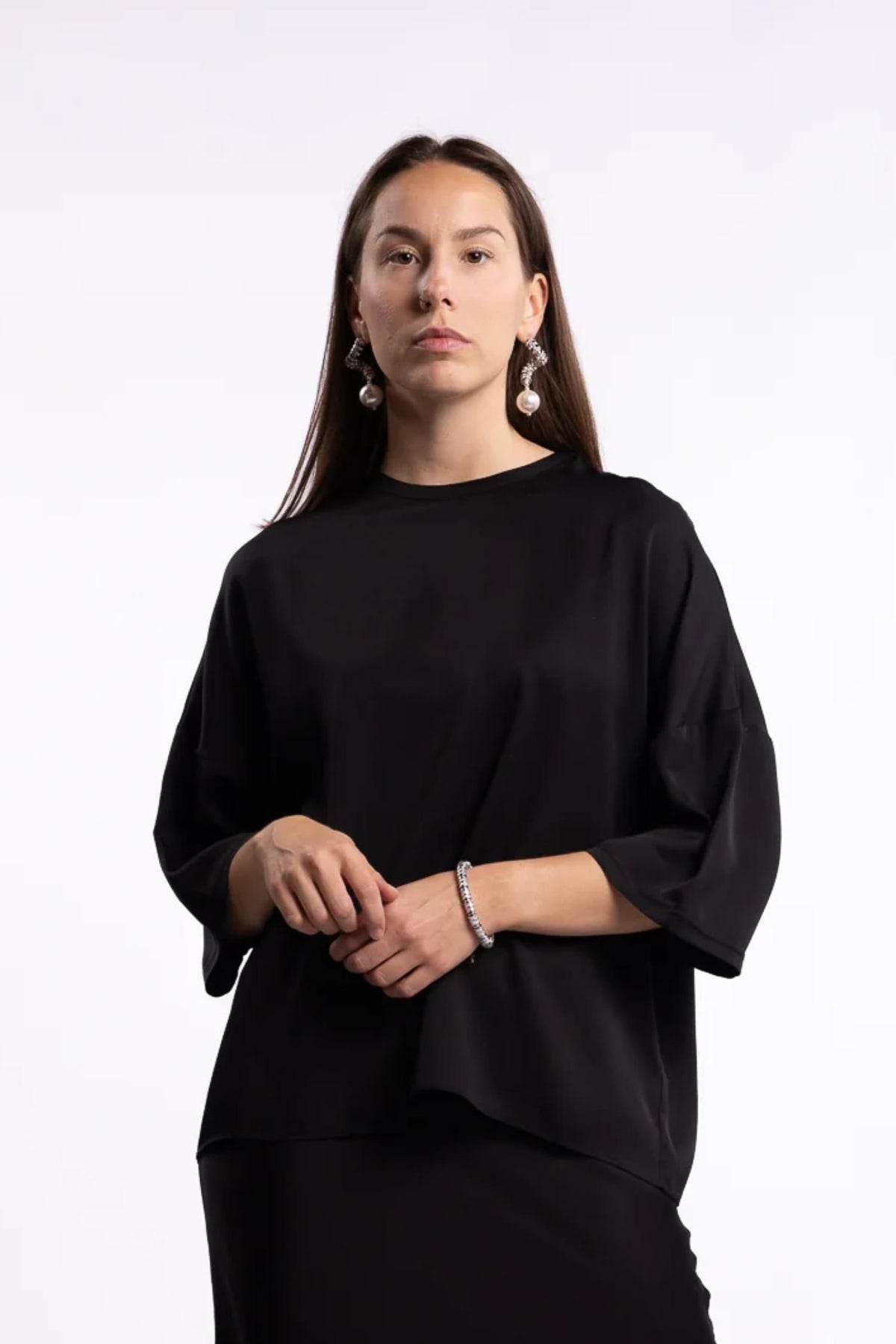 Thess Tee fra Ahlvar Gallery er en tidløs silkebluse i merkets signaturkvalitet silkestretch. Modellen har en rett og avslappet silhuett med senkede ermehull og smal halsringning, samt en skjult glidelås i nakken som gir et rent og elegant uttrykk. Den luksuriøse silkekvaliteten gjør plagget både komfortabelt og anvendelig – perfekt til både jobb og middag.