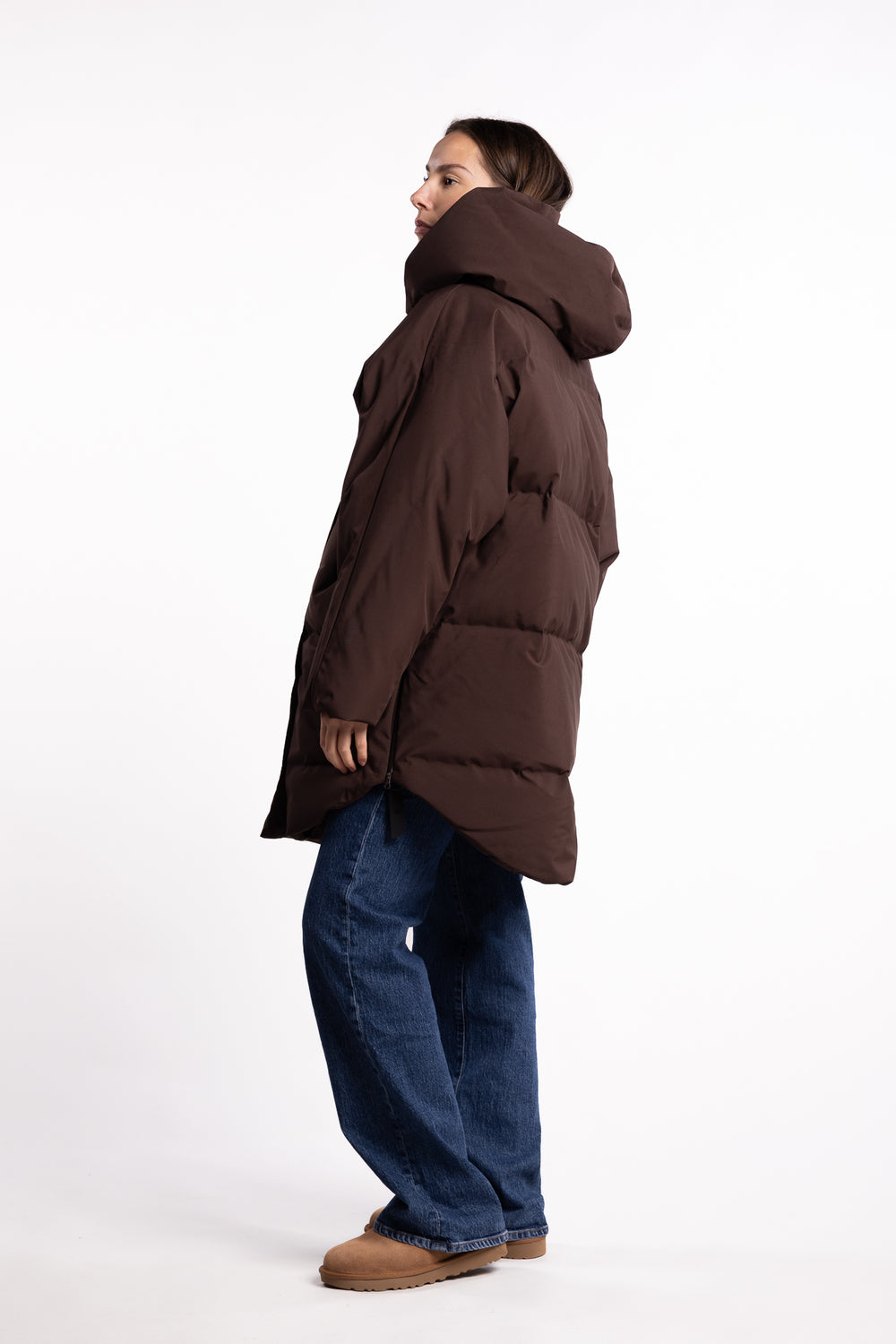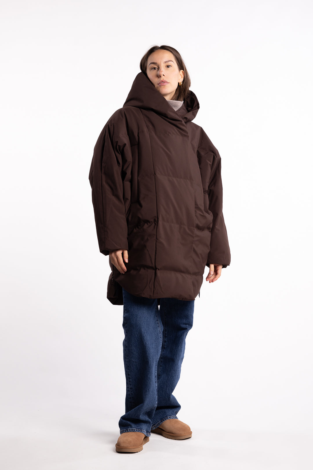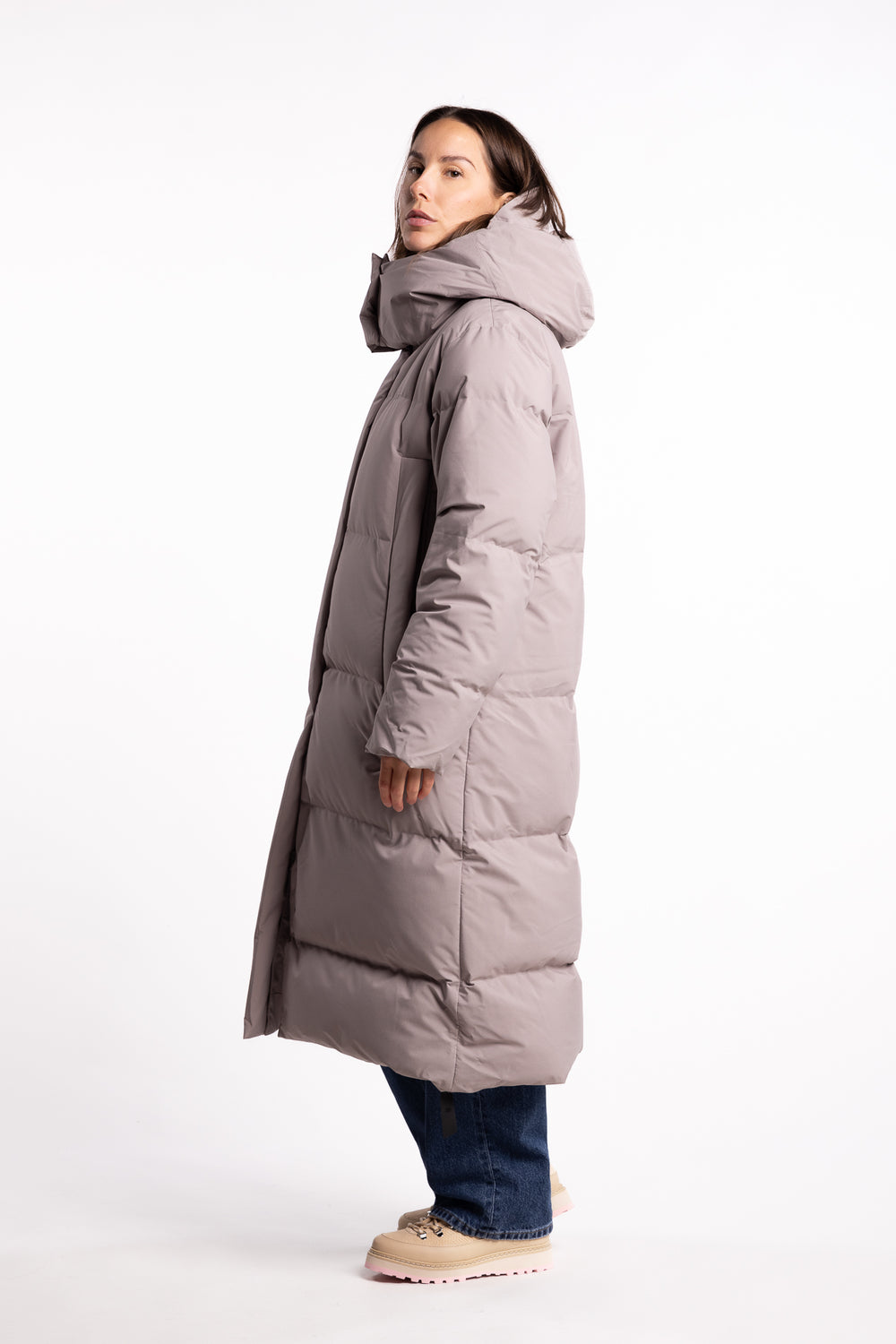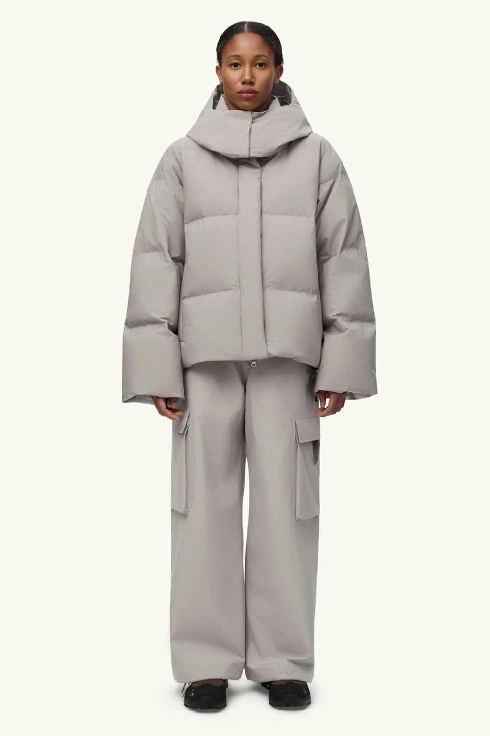 Wool And Silk Puffer Jacket With Contrast Inserts Taupe Suede