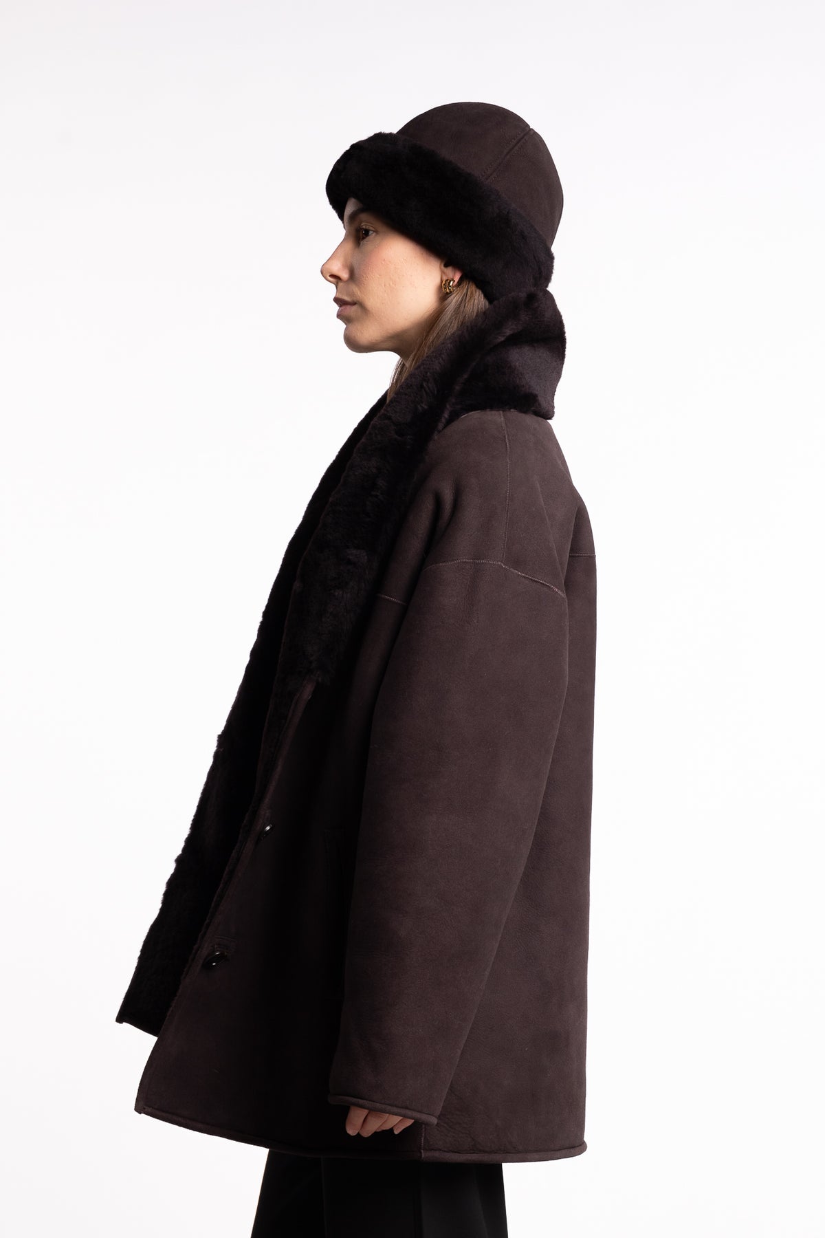 Melli Shearling Jacket fra Camilla Pihl er en eksklusiv jakke i 100 % lammeshearling med myk, semsket utside og varmende ullinnside. Jakken kan brukes begge veier! Modellen har tidløs passform med klassisk krage, glidelås foran og praktiske sidelommer. Perfekt ytterplagg for kjølige høst- og vinterdager, enten du styler den med jeans eller over en kjole for en mer sofistikert look.