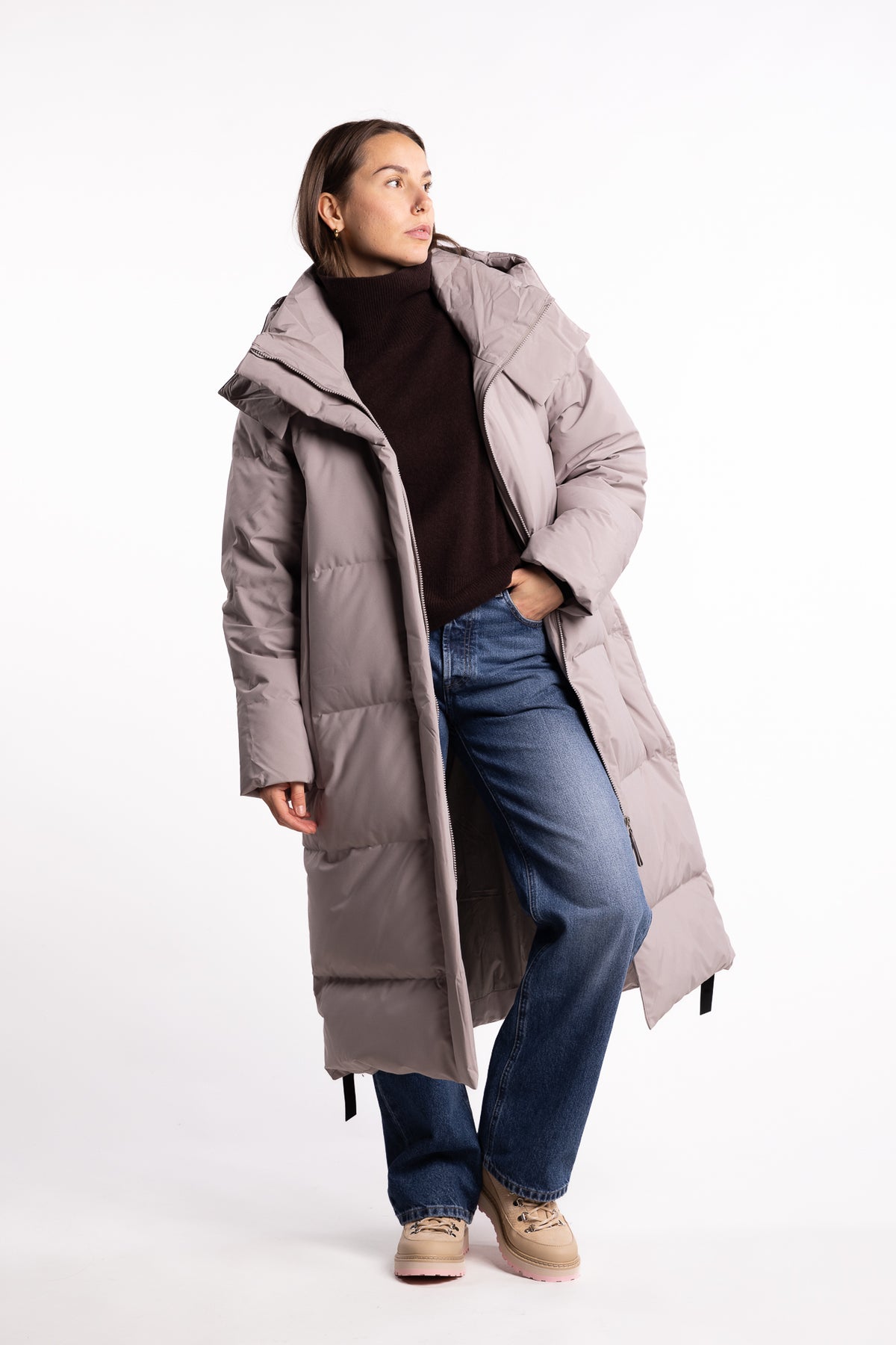 Stranda fra Blæst er en oversized og vanntett parkas i dun. Den oppdaterte versjonen kommer også med en justerbar hette, som bidrar til å beskytte deg mot snø og regn.