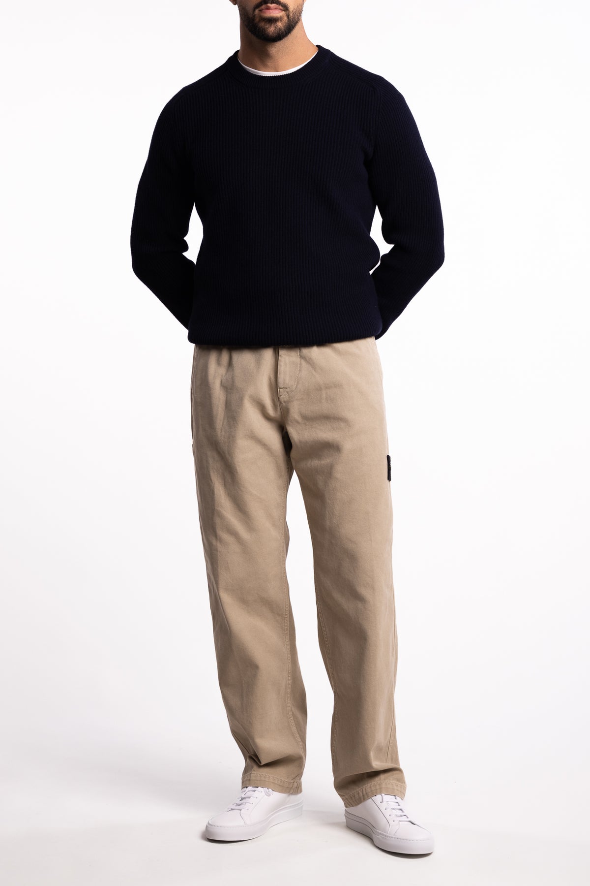 Loose fit bukse i 100% bomull, designet med Stone Islands ikoniske patch på venstre lår. Modellen har to baklommer og en ekstra lomme på høyre side over kneet for et funksjonelt uttrykk. Laget i Italia i en myk og slitesterk bomullskvalitet med en avslappet silhuett.