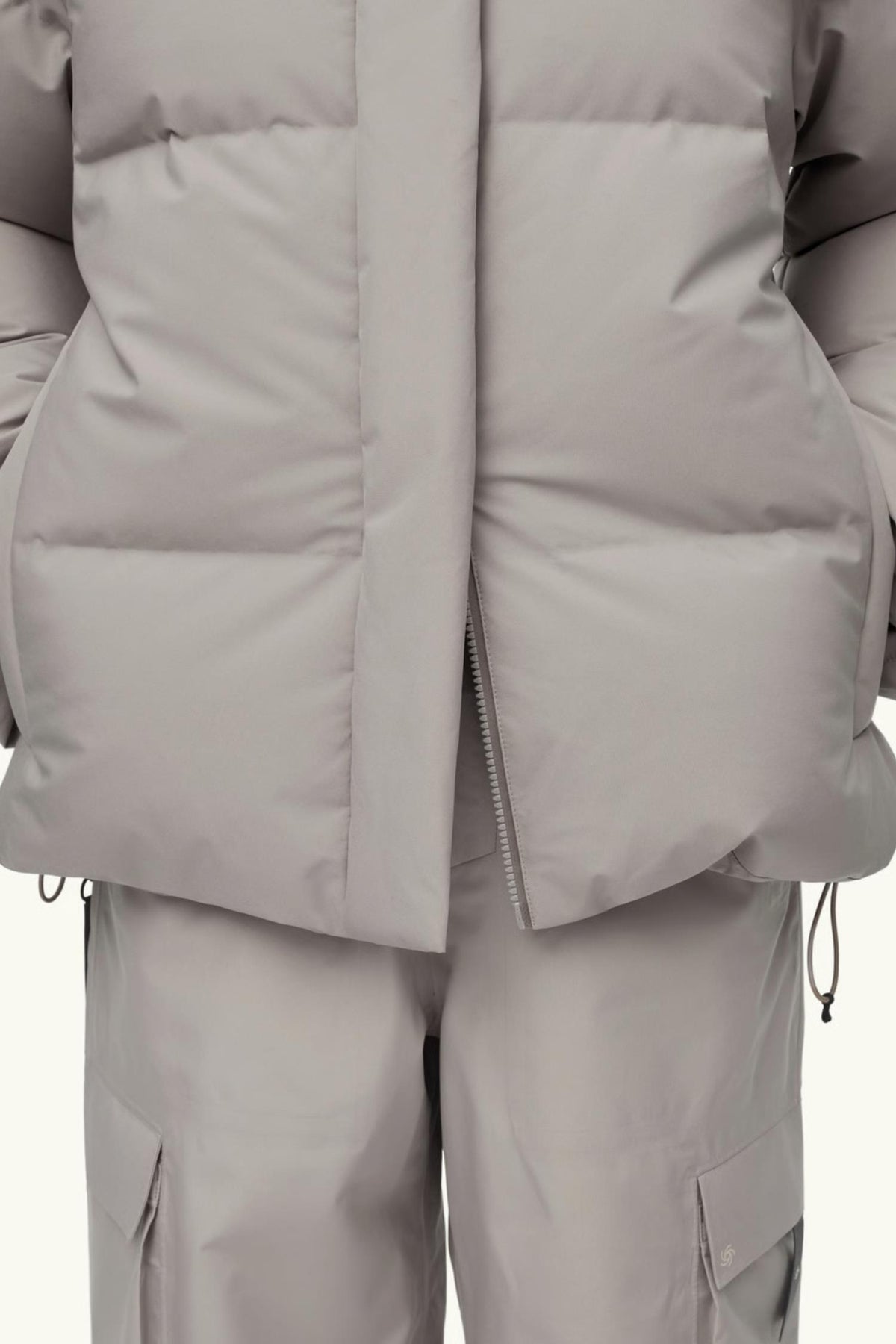 Selje Down Jacket fra BLÆST er en kort dunjakke som kombinerer varme, værbeskyttelse og moderne uttrykk. Modellen har en rett passform med voluminøse ermer og en ren, urban silhuett. Jakken er vanntett – på samme nivå som merkets tekniske skalljakker – og gir maksimal komfort på kalde, våte dager.