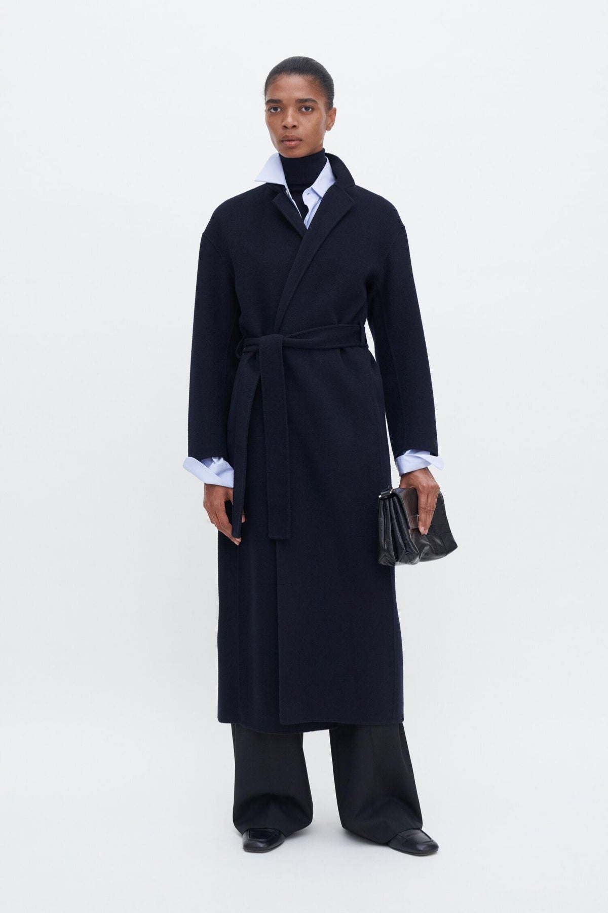Modellen har en lang og smal fasong med belte i livet, ståkrage og droppede skuldre som gir et moderne, minimalistisk uttrykk. Et perfekt valg både til jeans og t-skjorte på en lørdag, eller over en kjole til kvelden – et klassisk plagg som varer sesong etter sesong.