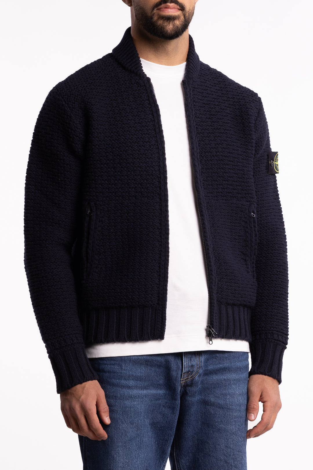 5100055 Pure Wool Bomber-Style Jumper with Zip Pockets Navy
