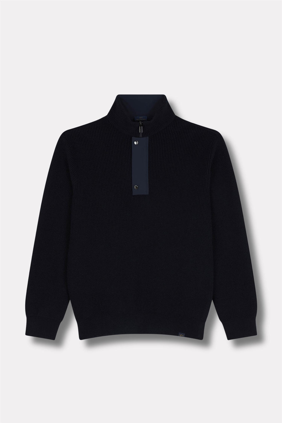 Bio Viscose Half Zip Sweater With Typhoon Details Navy