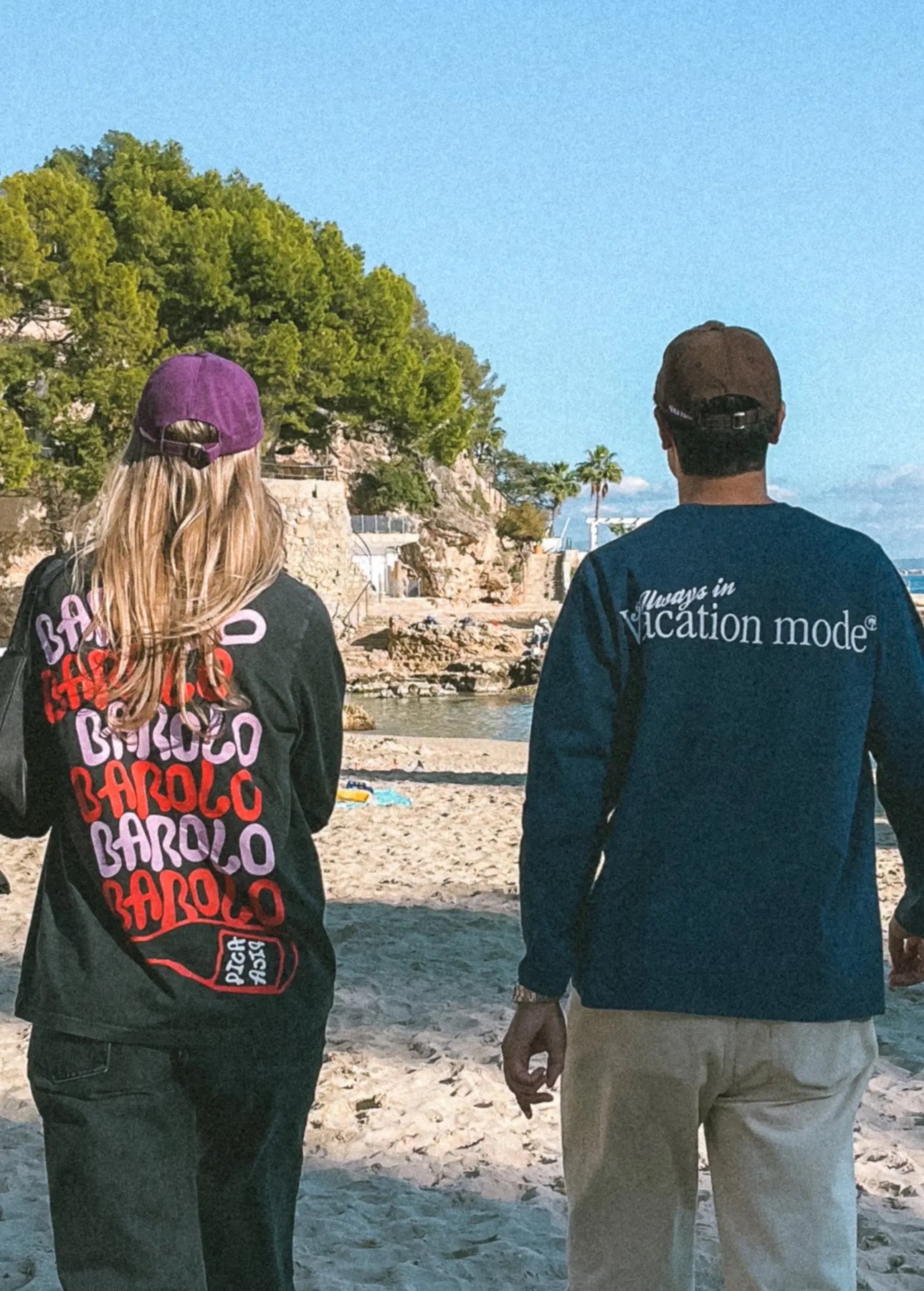 Barolo Longsleeve fra Pica Pica i vasket sort bomull med fargerikt vininspirert trykk foran og bak. Myk bomull i kraftig kvalitet og avslappet passform.