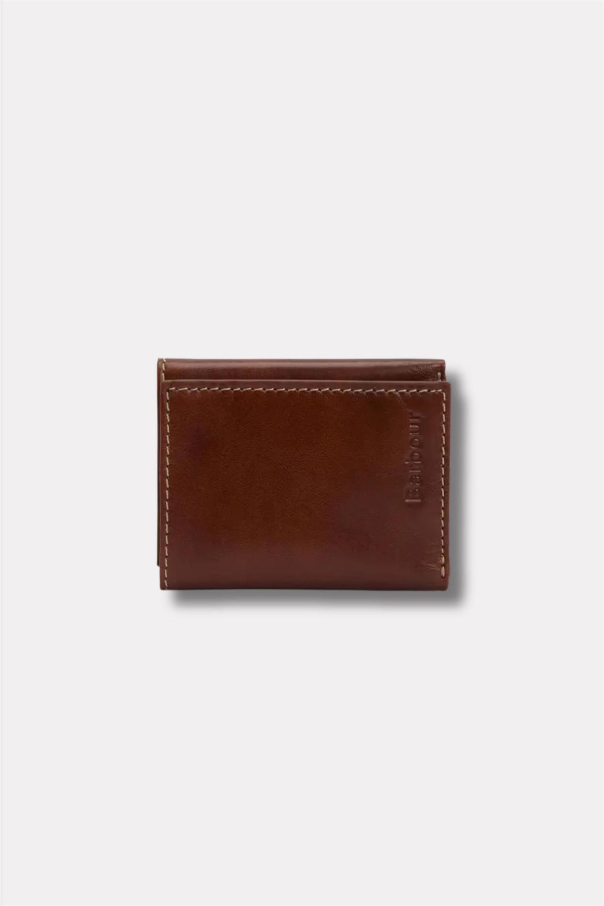 Bywell Leather Bifold Wallet er en elegant lommebok i skinn med slankt design. Den har preget Barbour-logo foran og flere innvendige rom.