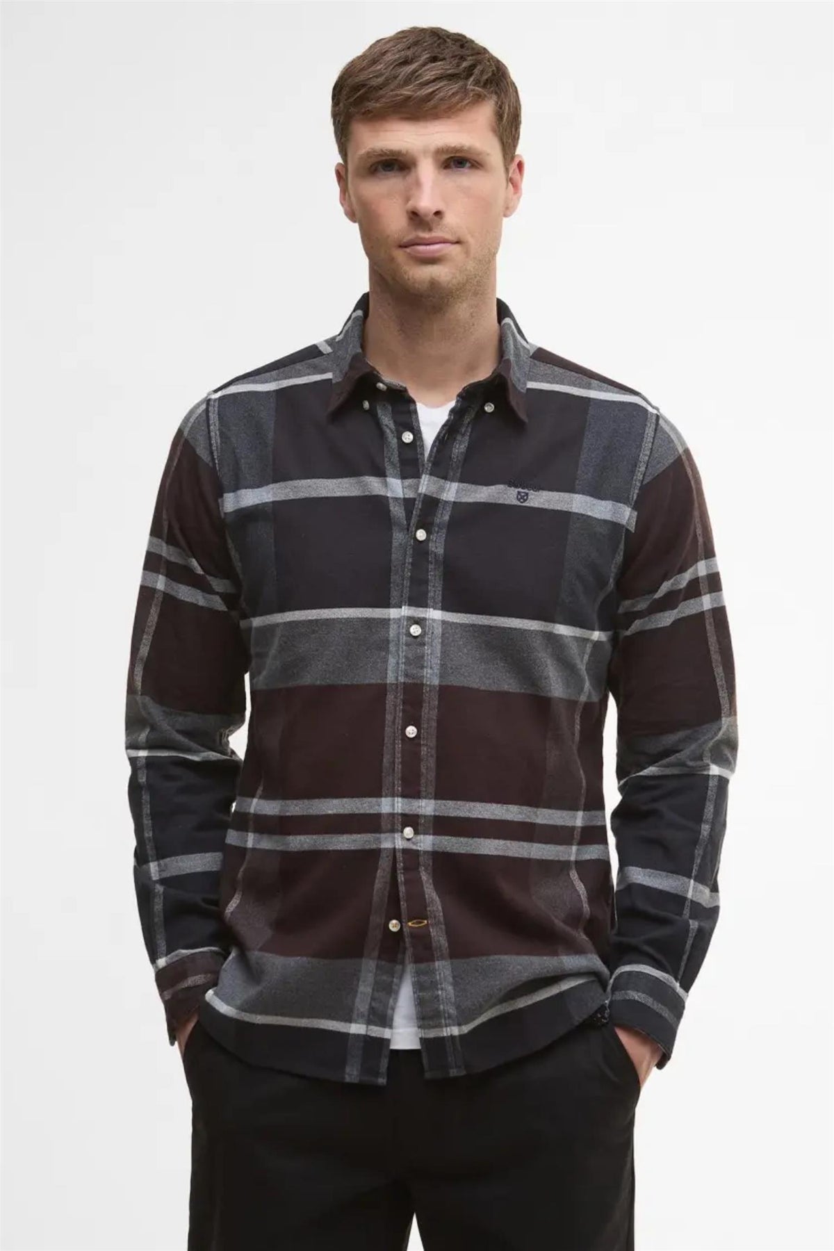 Langermet skjorte i 100 % bomull med børstet twill og klassisk tartanmønster. Modellen har tailored fit (regulær passform) og brystlomme med brodert Barbour-logo – perfekt til både smart casual og formelle anledninger.