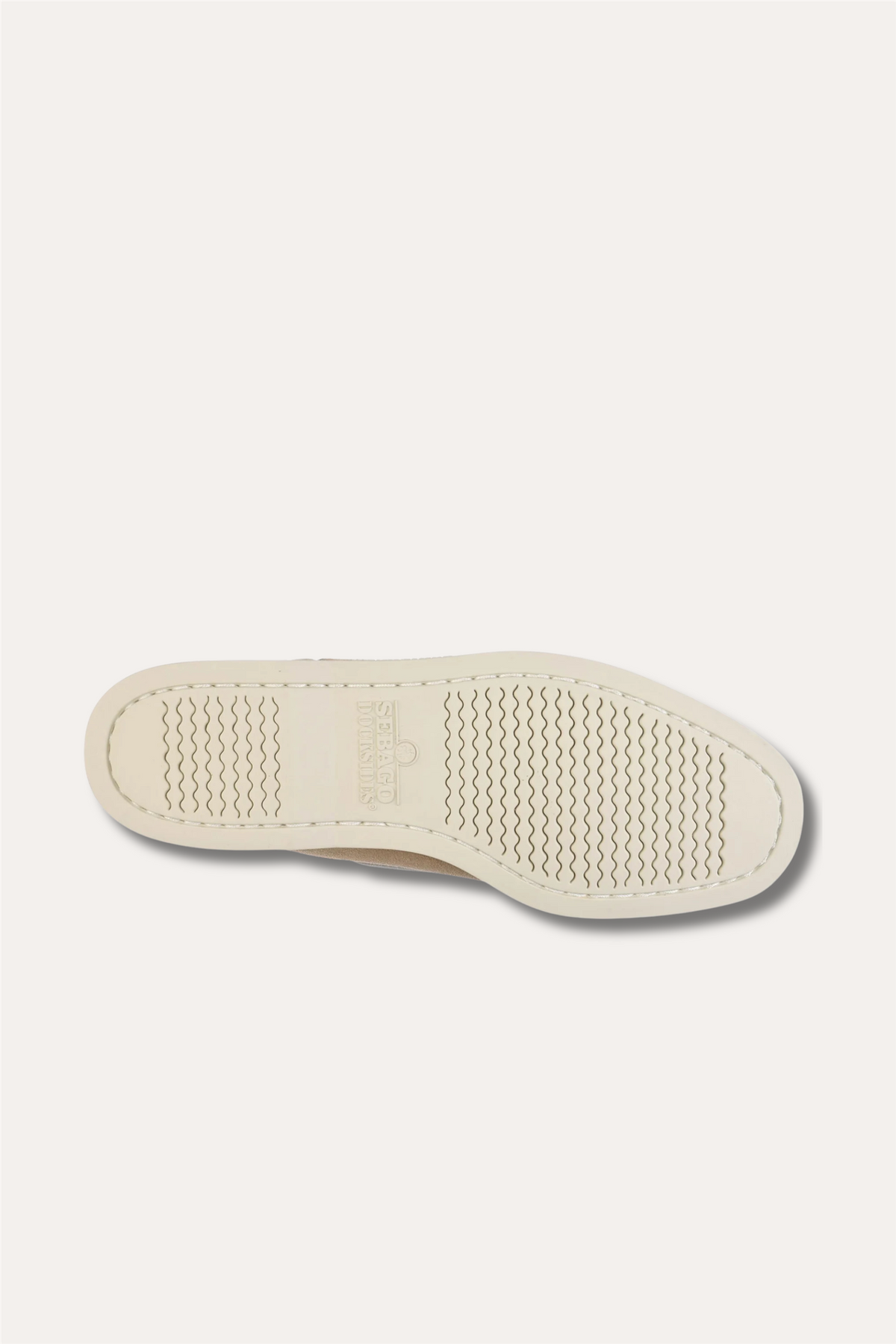 Disse slitesterke båtskoene fra Sebago er konstruert for å være det perfekte fottøyet til sjøs. De er laget av en myk, men likevel tykk og motstandsdyktig, ubelagt semsket skinn av høy kvalitet, og håndsydd med fineste håndverk. Skoene har skinnfôr, et 360° råhydesnøresystem og ikke-merkende, sklisikre gummisåler med spesialmønster for stabilt grep i alle værforhold. "Portland" mocs bærer med seg en iboende kjærlighet og tilknytning til byen Portland, en av de største havnene i New England, og vertskap for en verdenskjent seilklubb.