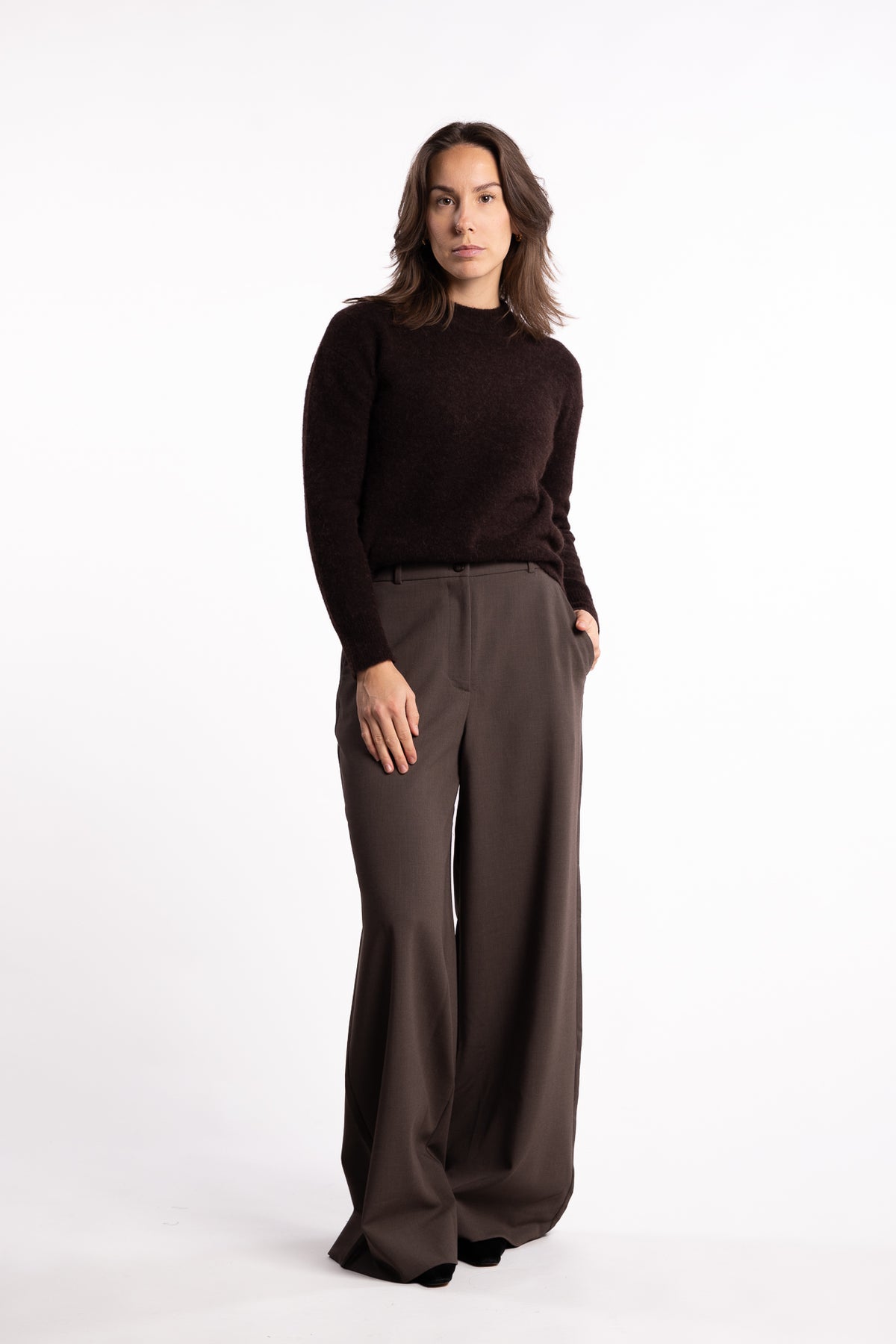 LauraFV fra Five Units er en bukse med ekstra lengde med ren, sofistikert silhuett. Modellen har høyt liv og slanke, vide ben som gir et elegant uttrykk både med flate sko og hæler. Bak finner du knappede paspolerte lommer som tilfører en skreddersydd finish. Designet i København og produsert av spesialister i Kina – en tidløs garderobefavoritt som kombinerer komfort og moderne stil.