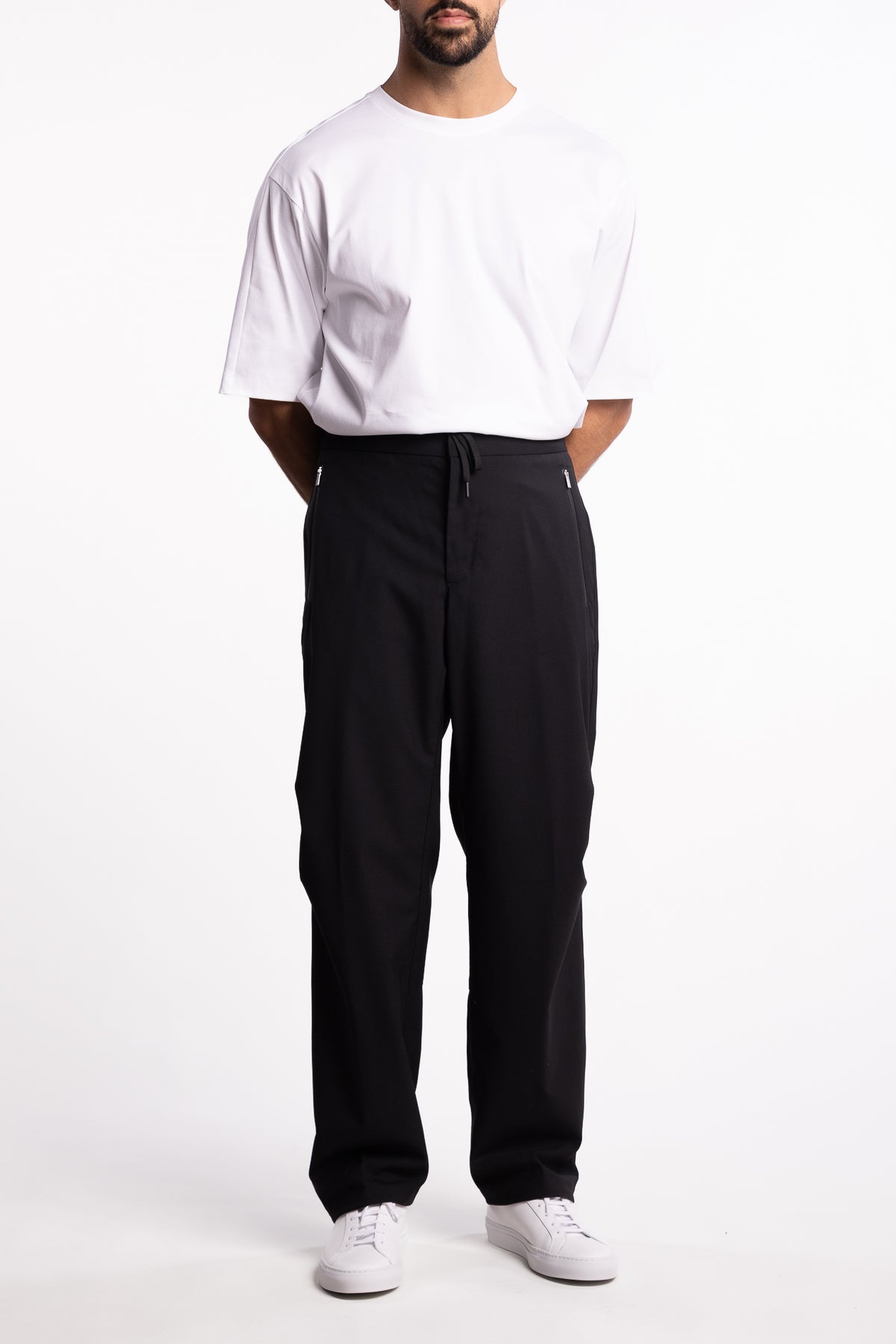 En teknisk bukse fra Herno Laminar med avslappet passform. Produsert i en funksjonell vevd kvalitet med 65 % polyester og 35 % ull, som gir god bevegelse og et rent uttrykk. Modellen har snøring på innsiden av linningen og glidelåslommer i siden.
