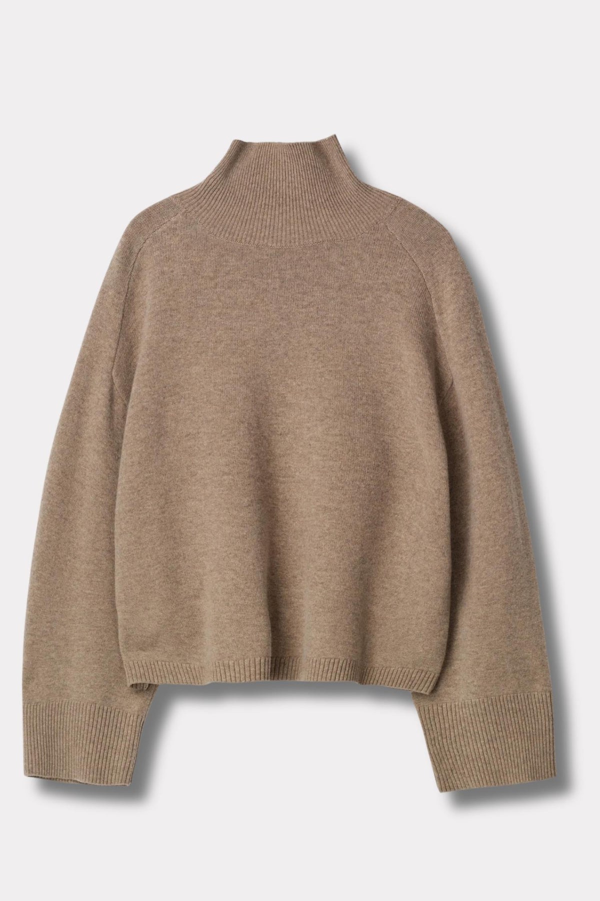 Cape Cod Turtleneck Sweater fra FWSS er en oppdatert versjon av en merkevareklassiker. Strikket i ultrafin merinoull, med en oversized silhuett, vide ermer og ribbestrikkede kanter som gir et raffinert uttrykk. Den myke, høye halsen er designet for å sitte behagelig uten å rulle, og gir en tidløs finish. En luksuriøs basegenser som enkelt kan styles både til hverdags og jobb – like fin med jeans som til dressede bukser.