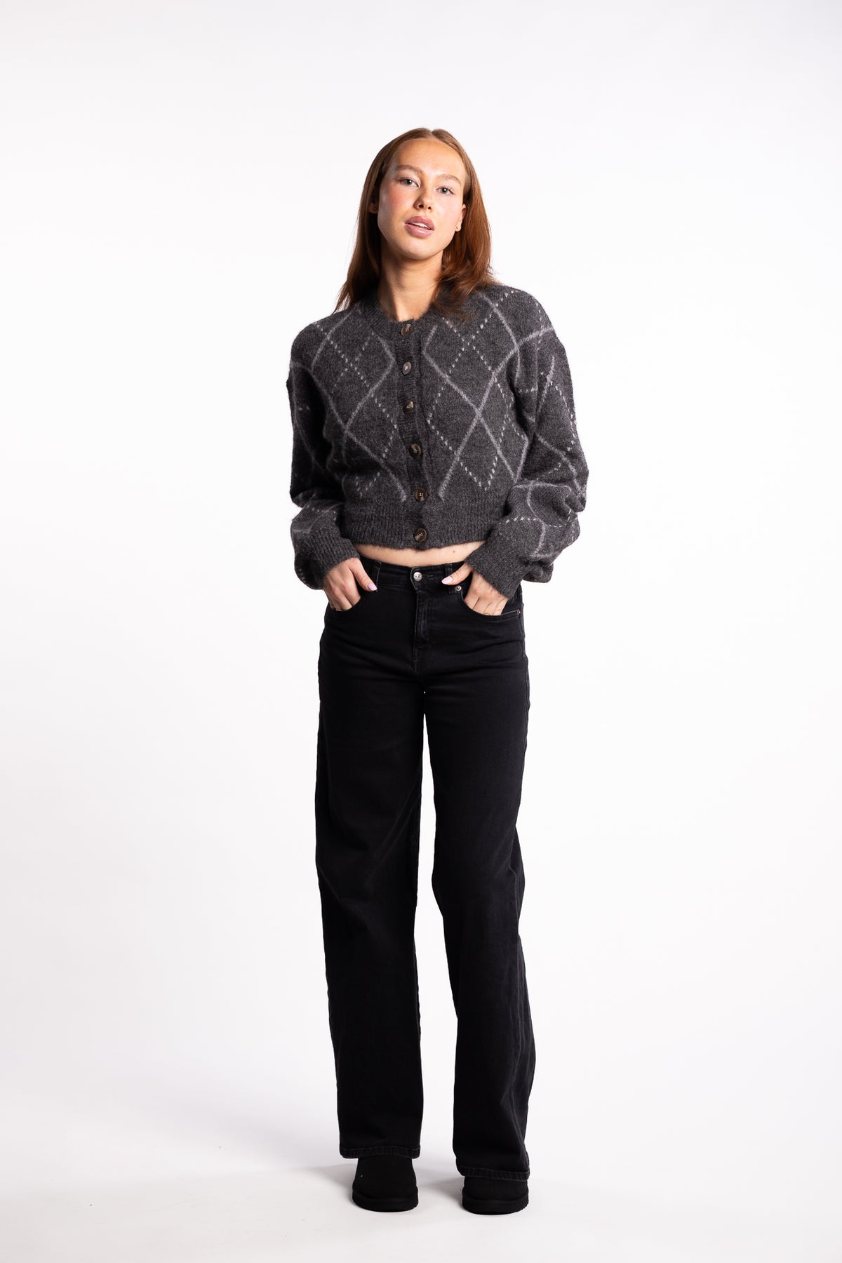 Merano Cardigan fra Adoore er en feminin cardigan med en moderne cropped lengde. Den har voluminøse puff-ermer med droppede skuldre som gir en avslappet silhuett, mens ribbestrikken i midje og mansjetter sørger for en strukturert passform. Cardiganen er designet med frontknapper i signaturstil fra Adoore og er strikket i en myk, stretchy alpakka-blanding som gir både komfort og varme – perfekt til hverdagsbruk.