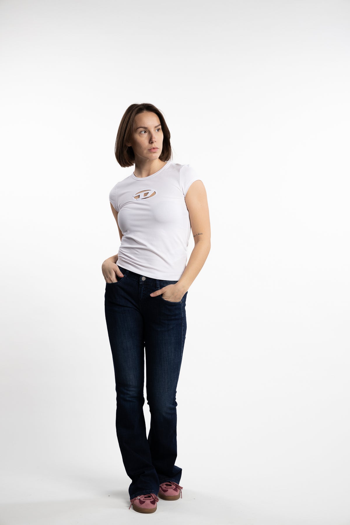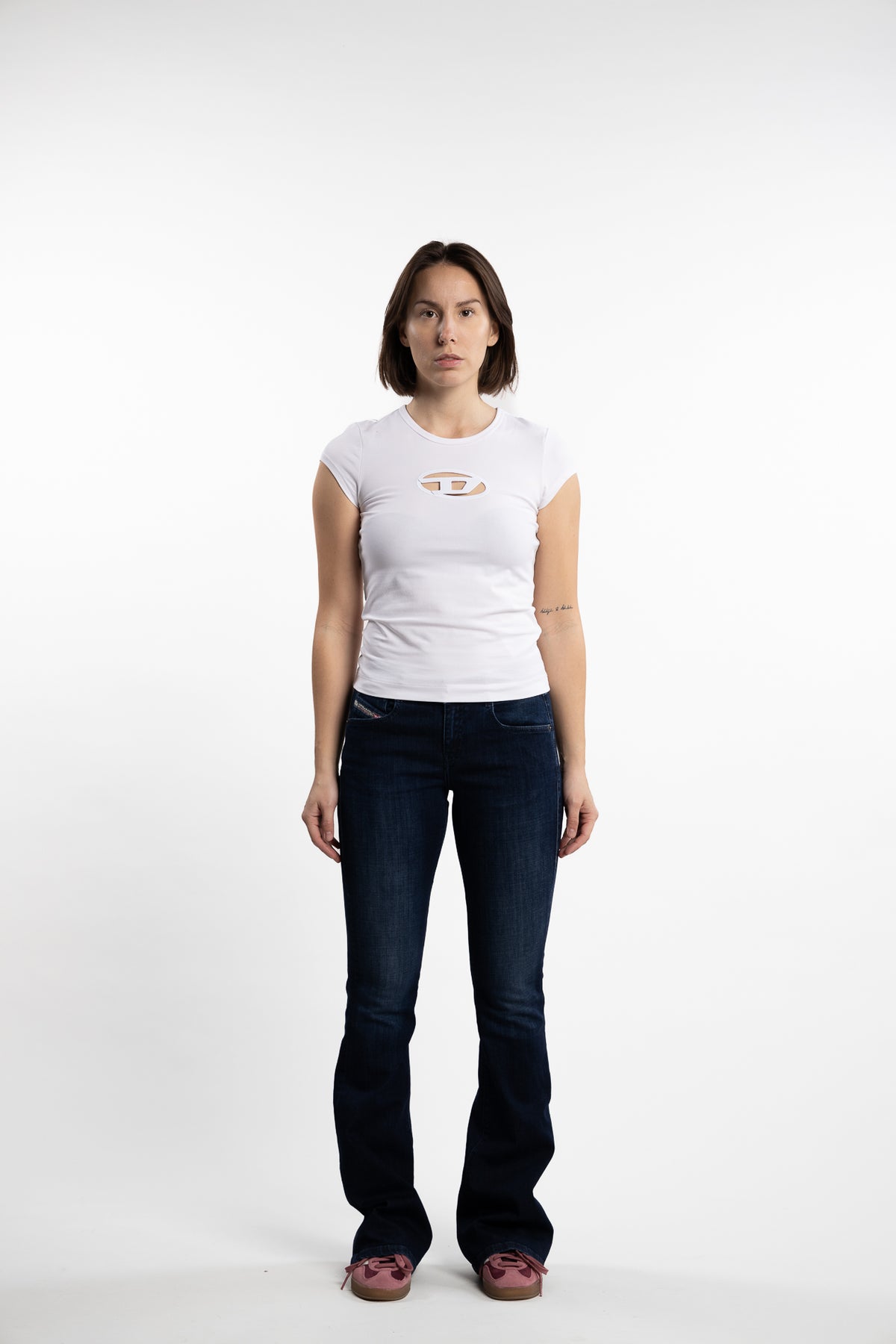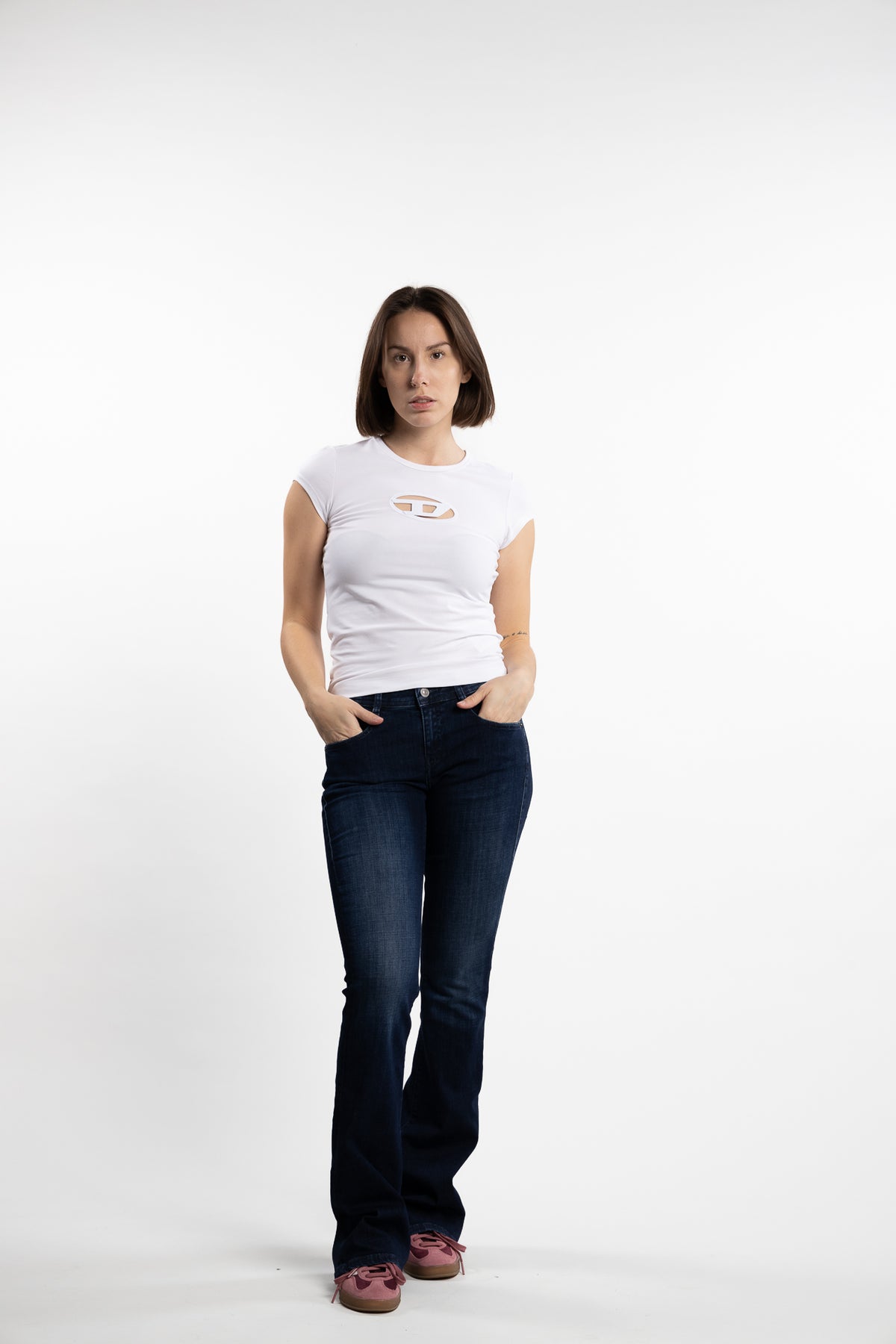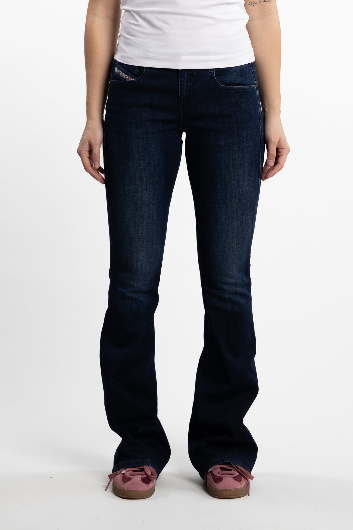 1969 D-Ebbey fra Diesel er bootcut-jeans med lav midje og noe høyere dekning bak. Denne stretch-jeansen er en del av Diesel's DNA-kolleksjon bestående av de beste modellene. Den har en mørk blå vask.