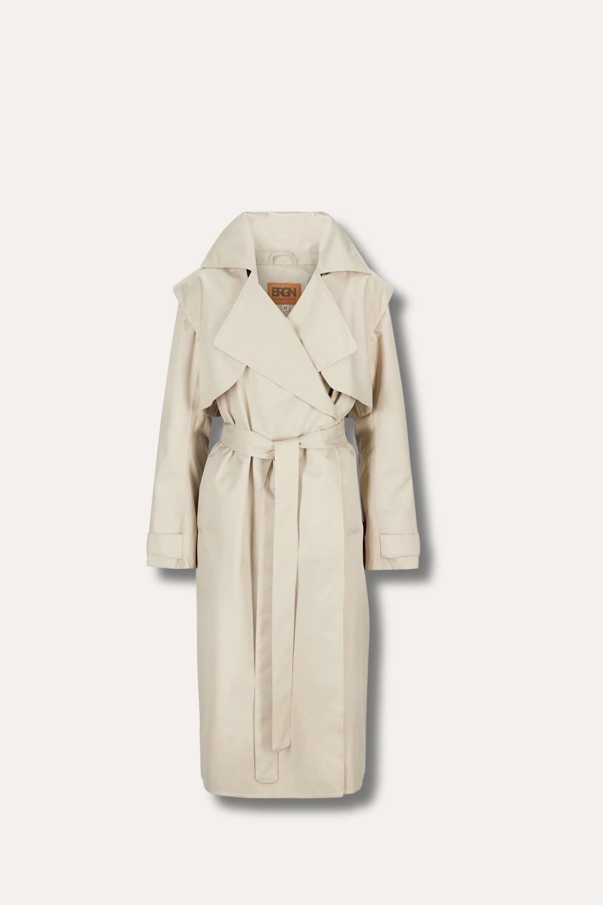 Regndråpe Trench Coat – Sand fra BRGN er en vanntett og elegant regnkåpe designet for å kombinere klassisk trench-estetikk med teknisk ytelse. Modellen er laget i resirkulerte tekstiler og har en vannsøyle på hele 20.000 mm, noe som gjør den fullt vanntett selv i kraftig og vedvarende regn. Den rene silhuetten gjør at du kan kle deg pent i all slags vær, mens magnetisk lukking dekker YKK-glidelåsen og beskytter mot vanninntrengning. Jakken har sidelommer, refleksdetaljer for økt synlighet og en avtagbar hette skjult i kragen som enkelt kan tas frem ved behov. Teipede sømmer sikrer maksimal beskyttelse, og modellen kan brukes ned til 0 ℃. En funksjonell trenchcoat som fungerer like godt til jobb, pendling og hverdagsbruk.