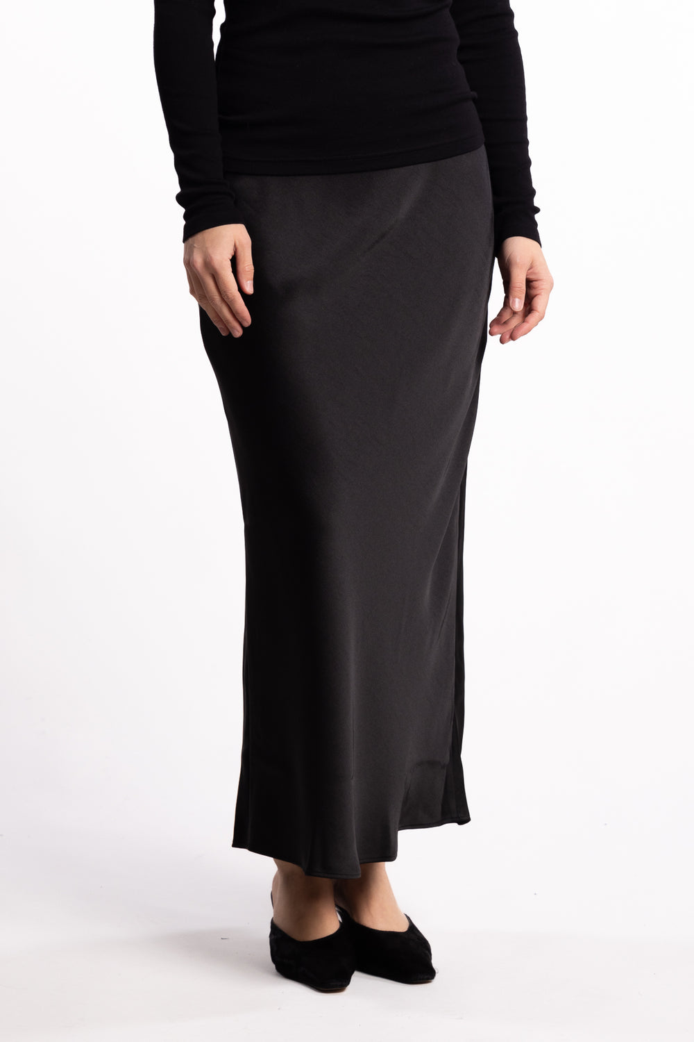 Hana Long Silk Skirt- Black