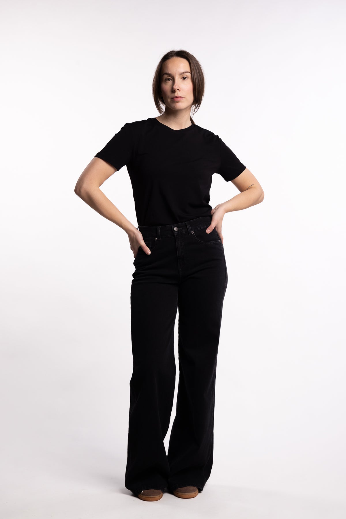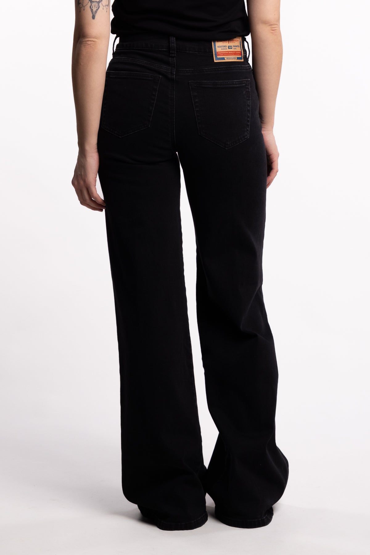 1978 D-Akemi 09M69 fra Diesel er en flared jeans med medium høyt liv og vid benvidde – en ikonisk silhuett som sitter tett i midjen og slipper gradvis fra lår til ankel. Jeansen er laget i komfort-denim med delvis resirkulert bomull og har en mørk grå vask med ren finish. En tidløs modell med moderne uttrykk – enkel å style både til hverdags og til fest.