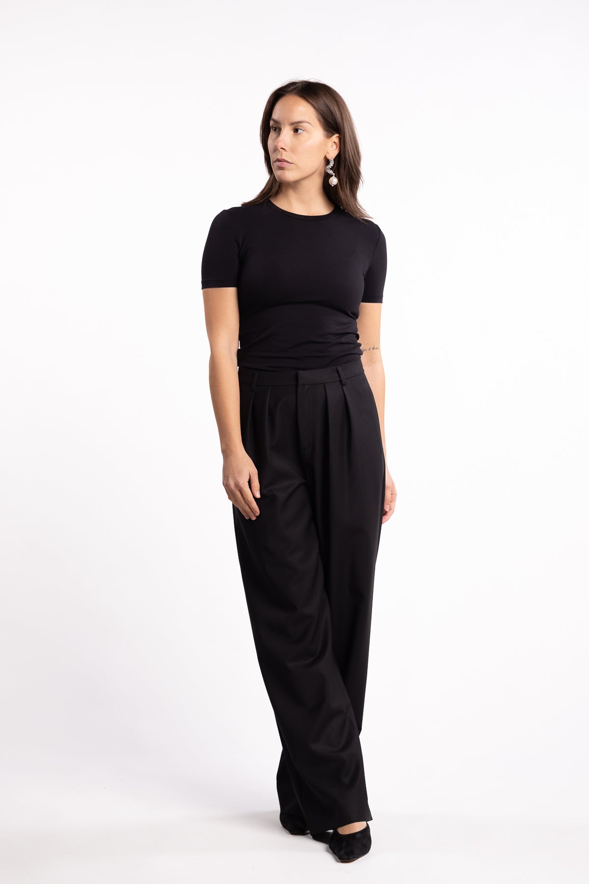 Monaco Pant fra Envelope1976 er en klassisk dressbukse med tidløst, vidt ben og en skreddersydd silhuett. Laget av 100 % fin italiensk ull, gir den både holdbarhet og en elegant look som passer like godt til kontoret som til fritid. Modellen har en passform som er tro mot størrelsen, og er et perfekt baseplagg for en garderobe med fokus på kvalitet og stil.