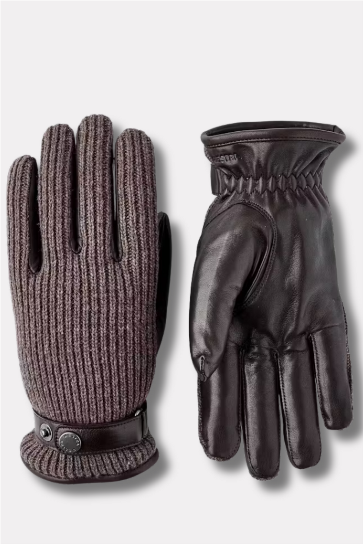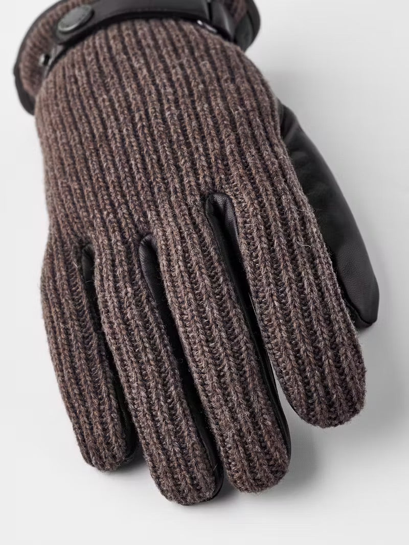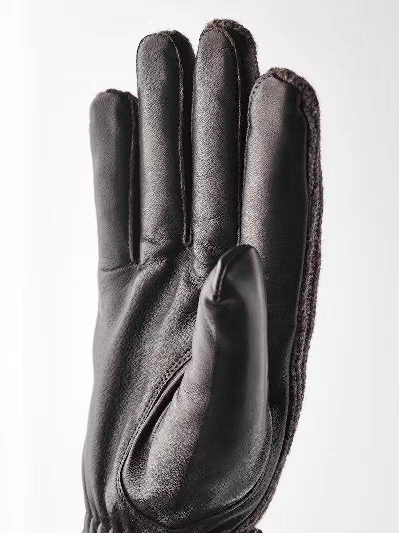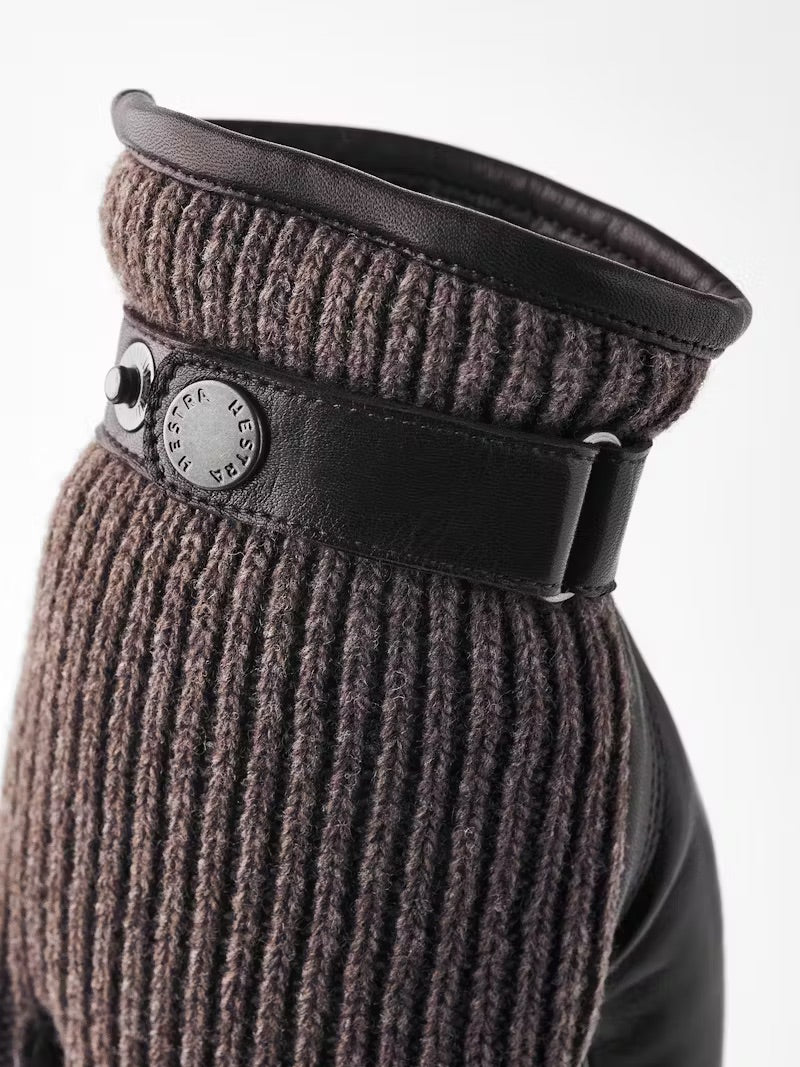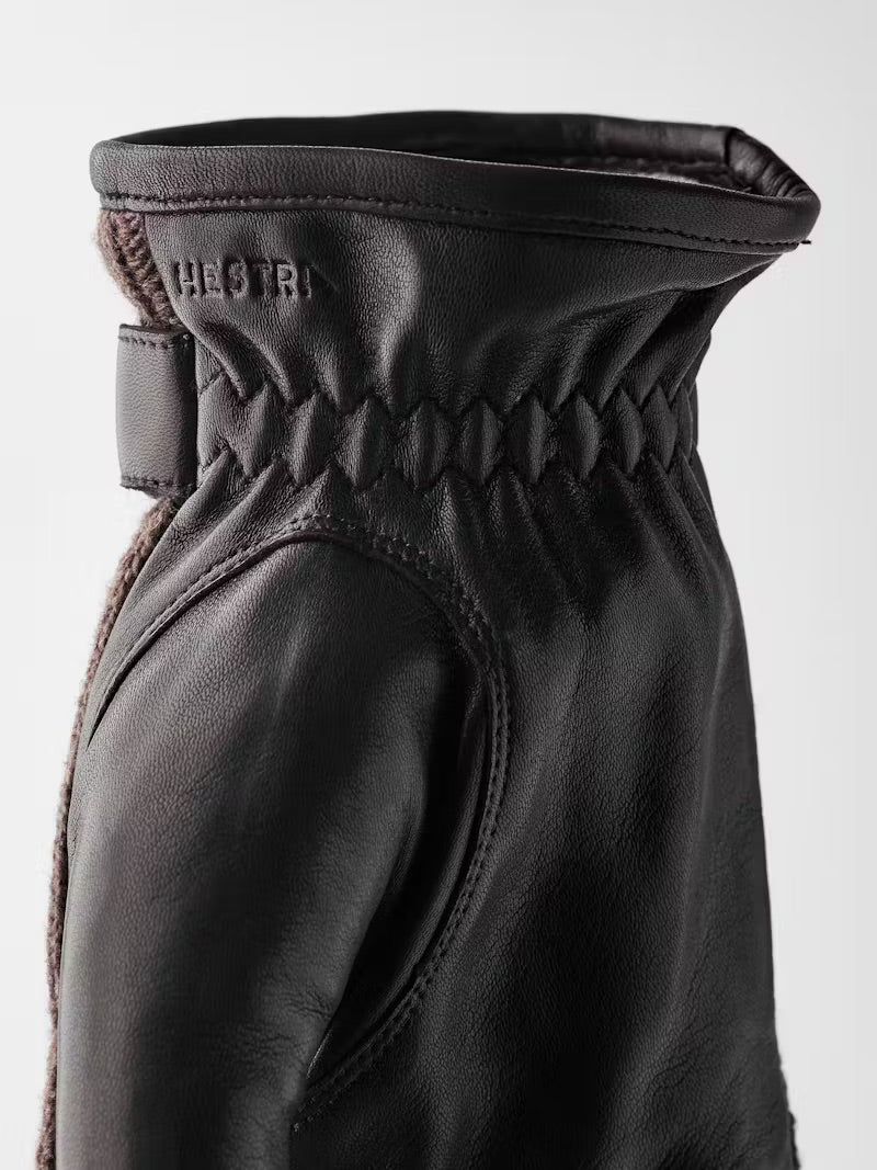 Sporty og elegant hanske fra Hestra med en kombinasjon av glatt lammeskinn i håndflaten og ribbestrikket ull på oversiden. Den tynne, strikkede ullfôringen gir varme og komfort uten å virke klumpete. En justerbar lærstropp med trykknapp og elastisk søm ved håndleddet sikrer optimal passform.