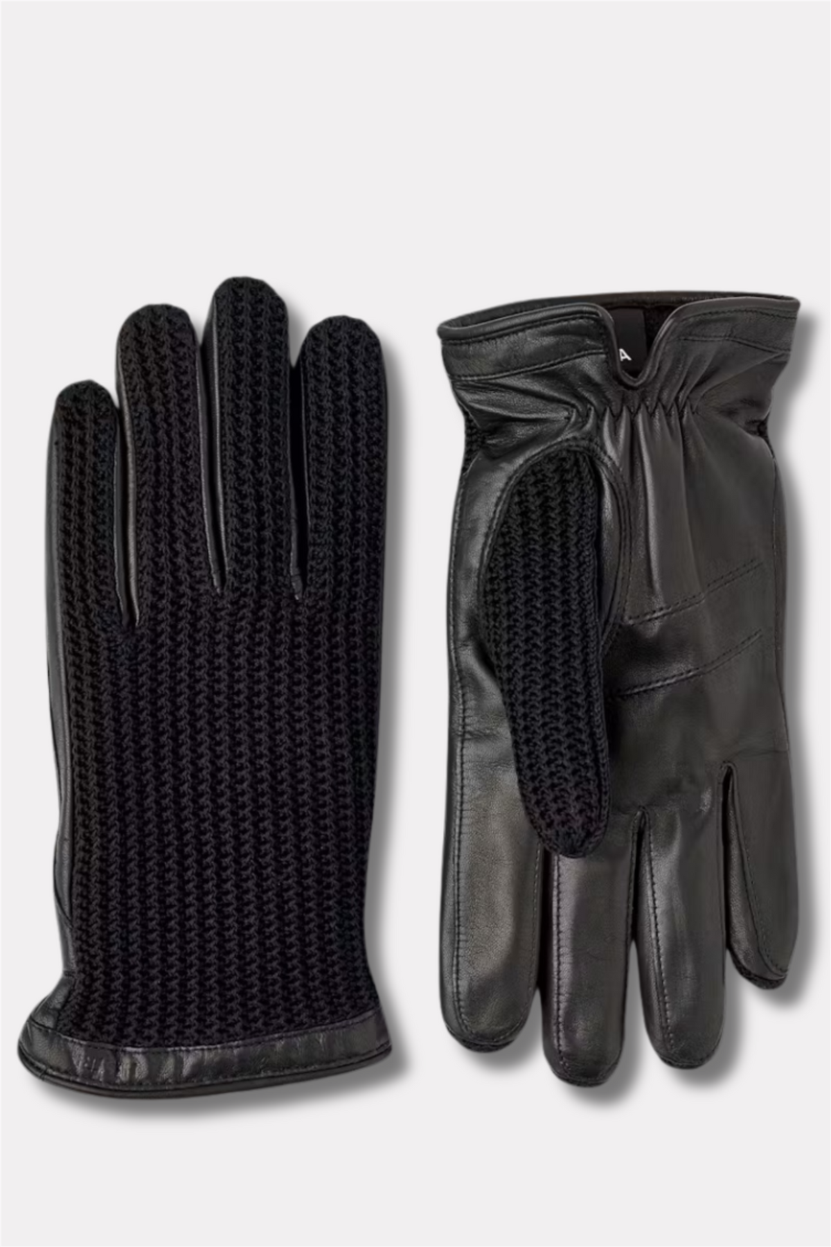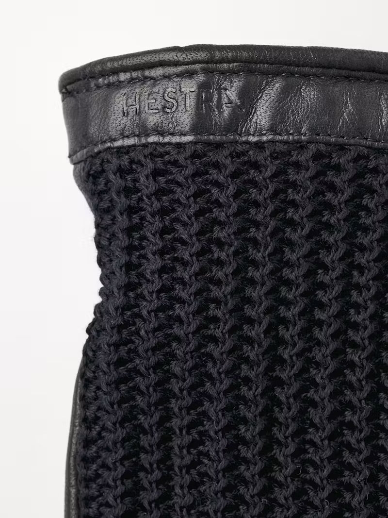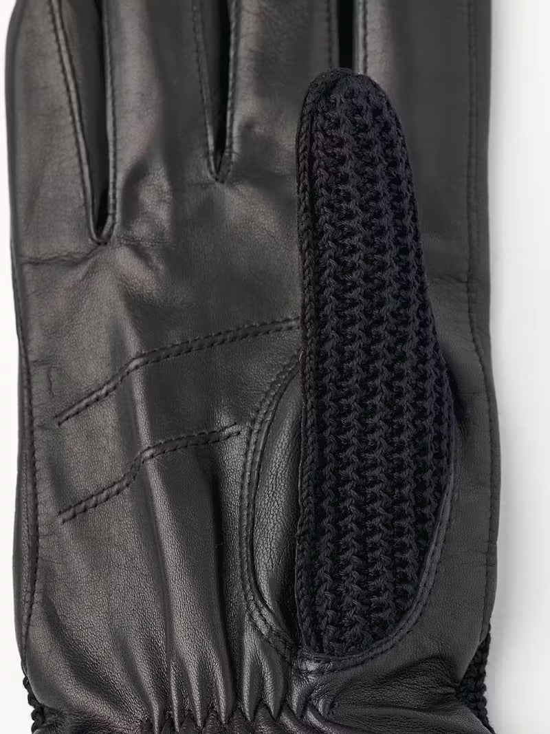 Elegant hanske fra Hestra laget i mykt italiensk lammeskinn med håndheklet bomull på oversiden. Et klassisk design som kombinerer tidløs stil med funksjonell varme. Den tynne, strikkede ullfôringen gir behagelig isolasjon for kjølige høst- og vinterdager, mens den elastiske sømmen og åpningen ved håndleddet sikrer god passform.