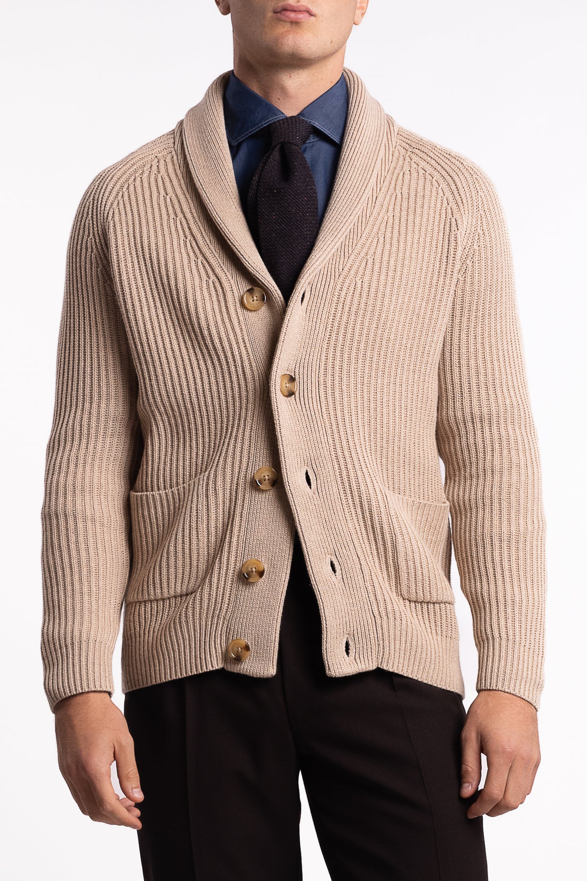 Cardigan fra Frislid i en myk ull- og bomullsblanding. Designet med sjalkrage, knappestolpe og påsydde lommer. Ribbestrikket tekstur gir et sofistikert uttrykk, mens den rette passformen sikrer komfort og bevegelsesfrihet.