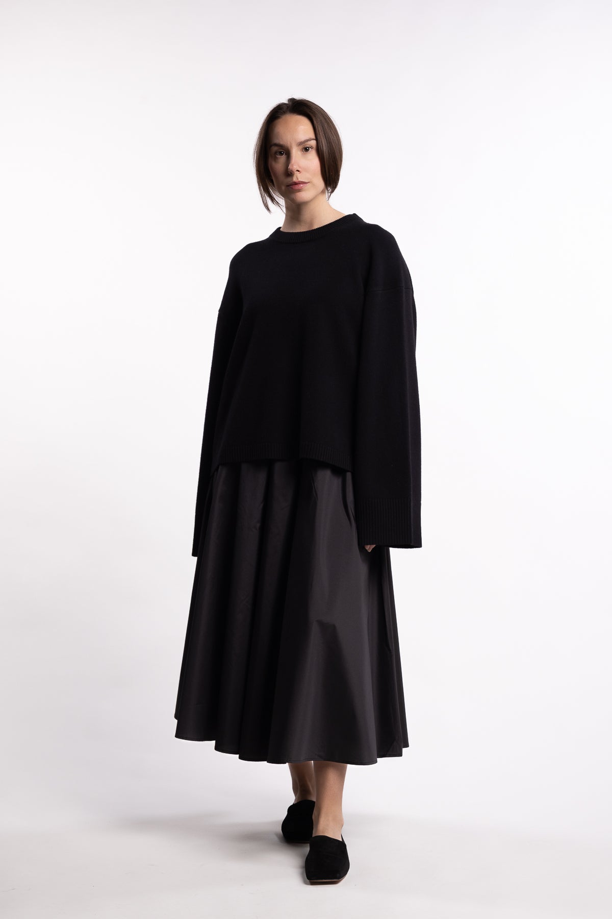 Crewneck Lounge Sweater fra FWSS er en avslappet og sofistikert strikkegenser laget i ultrafin merinoull med en ekstra myk og behagelig følelse. Genseren har en romslig, oversized passform og er designet med ribbestrikkede avslutninger, helfashionerte detaljer og en bakside i reverse jersey-strikk som gir plagget et gjennomført og moderne uttrykk. Et allsidig baseplagg som fungerer like godt til avslappede hverdagsantrekk som i en mer gjennomtenkt capsule wardrobe.