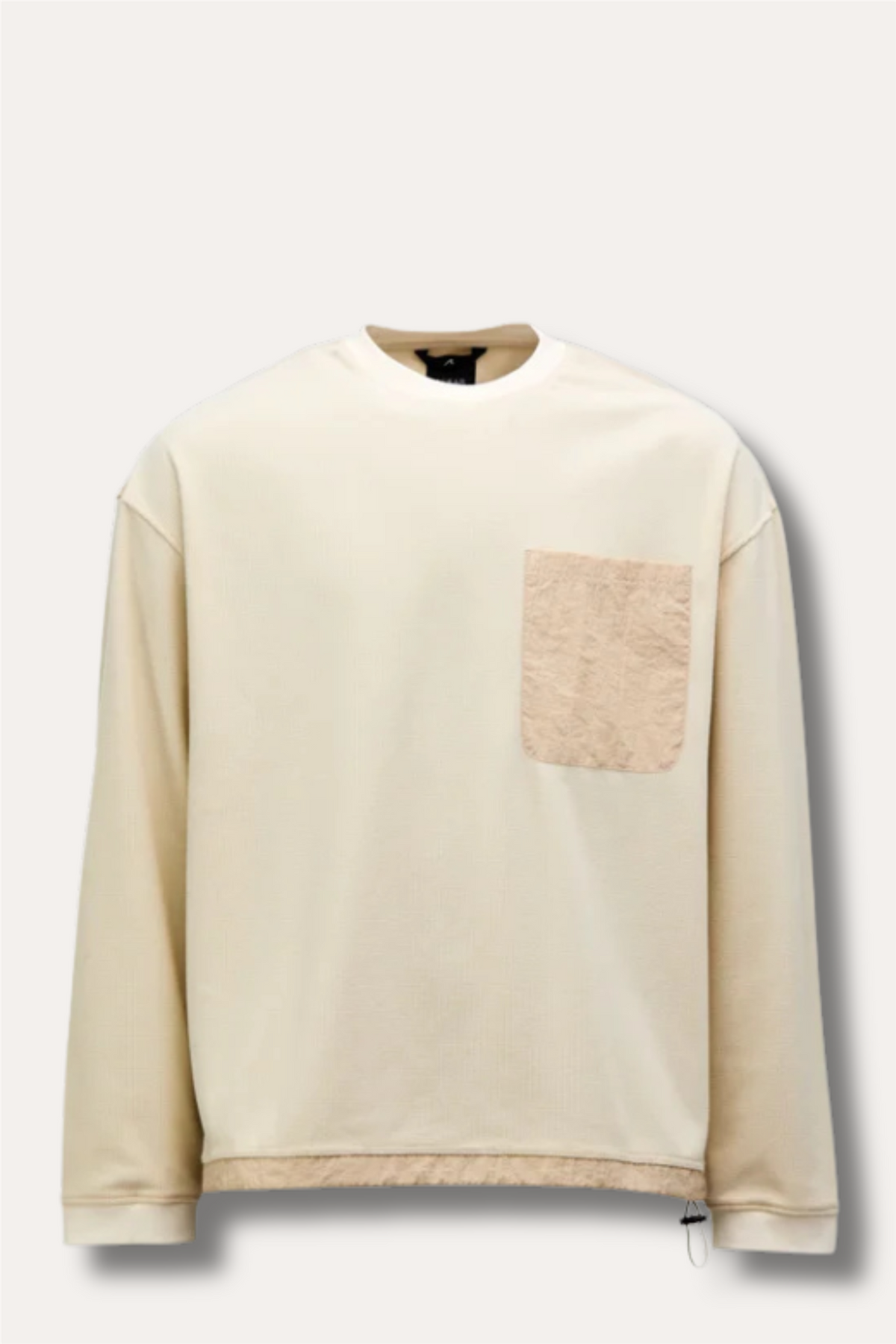 Denne langermede genseren er laget i Pontetorto polar fleece, kjent for sin mykhet, varme og pusteevne. Et rent og moderne uttrykk løftes av tekniske nylondetaljer som gir plagget et funksjonelt og samtidig raffinert preg.