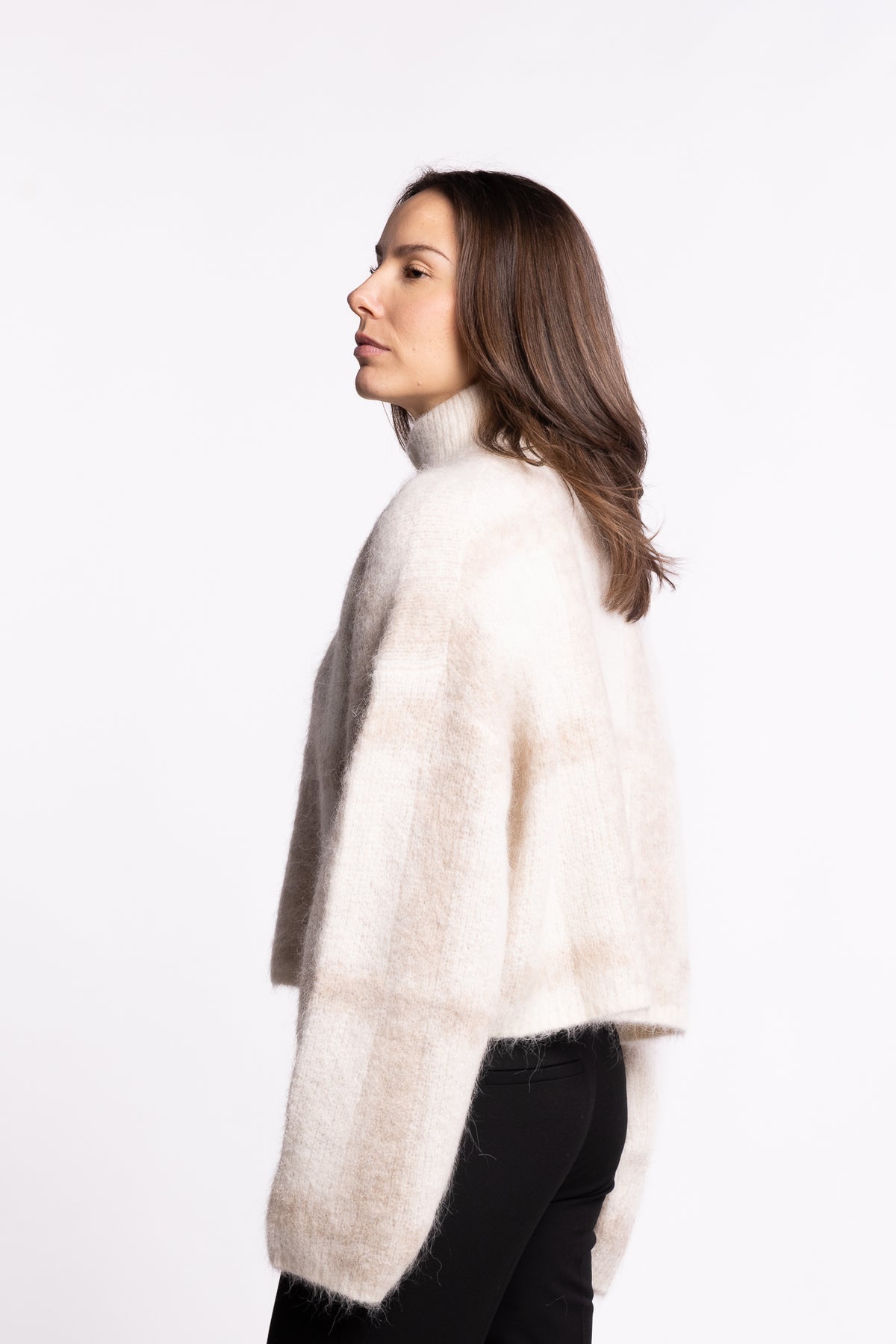 Tine Light Check Cardigan fra Holzweiler er en lett og myk cardigan med et avslappet, men gjennomført uttrykk. Den korte lengden og rette silhuetten gir plagget et moderne preg, mens det diskrete rutemønsteret i lyse bruntoner tilfører dybde og karakter. Cardiganen er laget i en eksklusiv alpakkablanding som gir en luftig og behagelig følelse mot huden – perfekt for lag-på-lag gjennom vår- og sommersesongen.