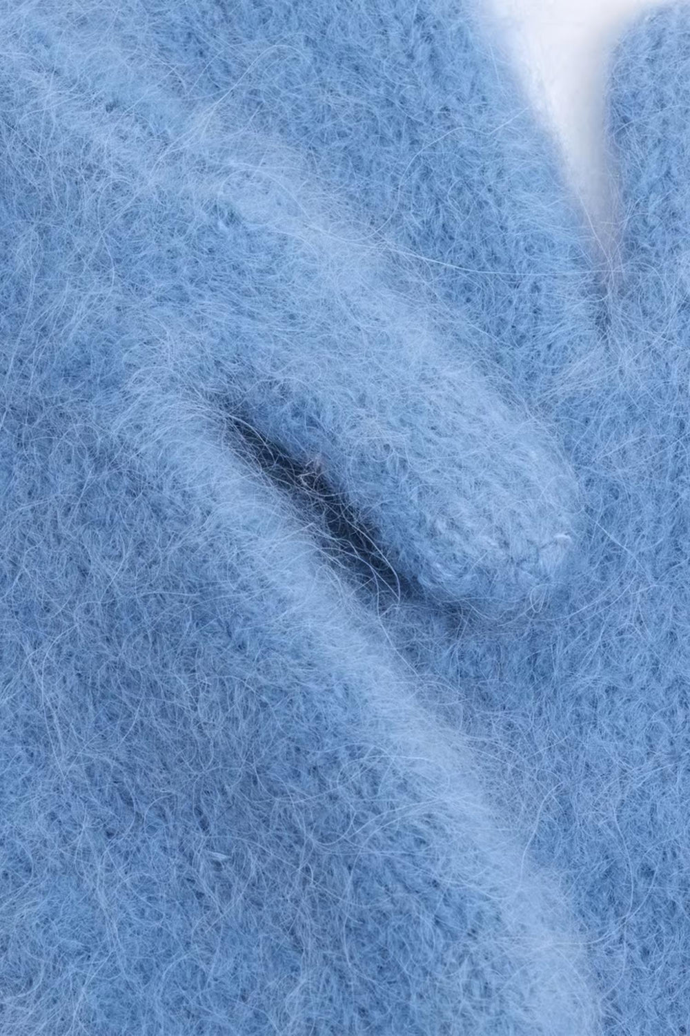 Tine Fluffy Mittens fra Holzweiler er et par myke votter strikket i en luksuriøs alpakkablanding med ekstra stretch for komfort. Vottene har ribbestrikkede kanter som holder dem godt på plass og et fluffy uttrykk som gjør dem både varme og stilfulle. Perfekte for kalde dager – style dem gjerne med den matchende Tine Fluffy Beanie for et komplett sett.