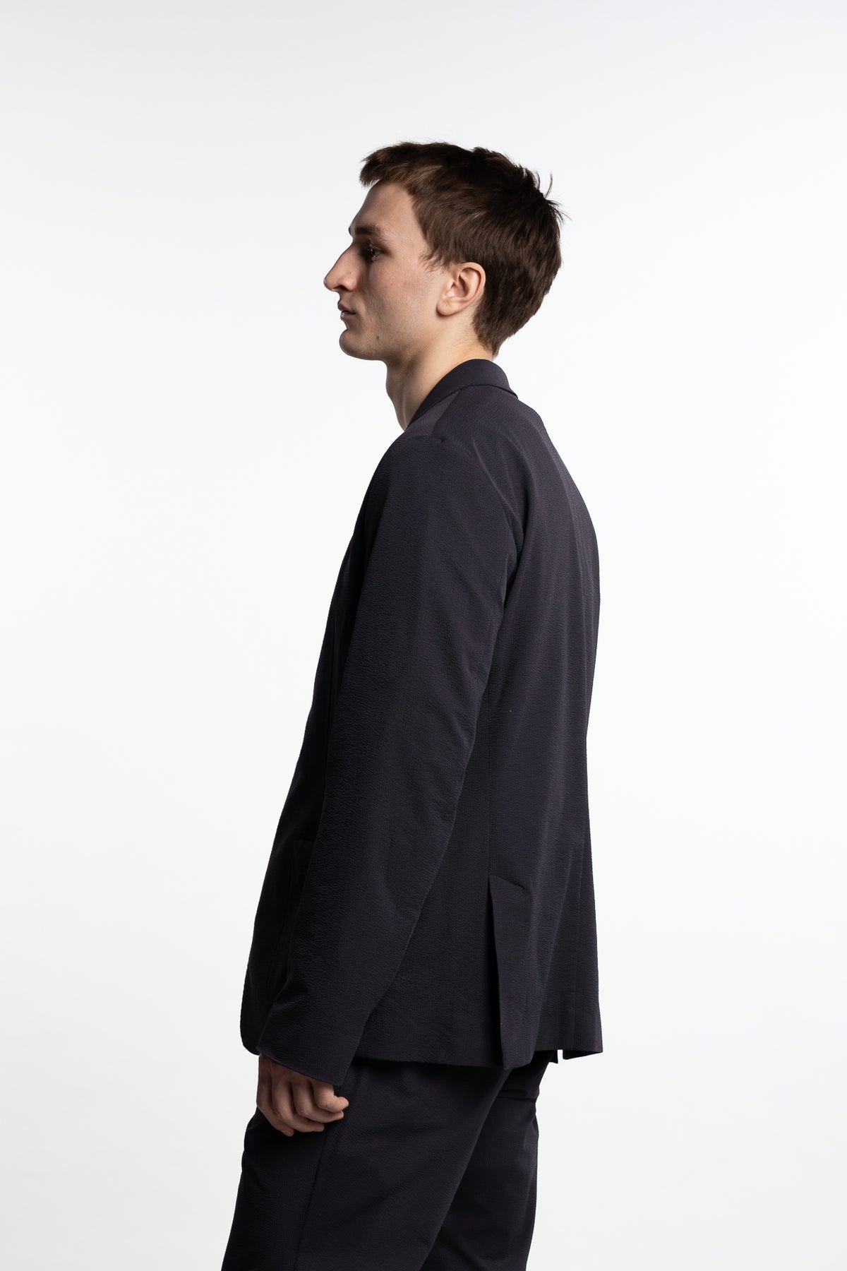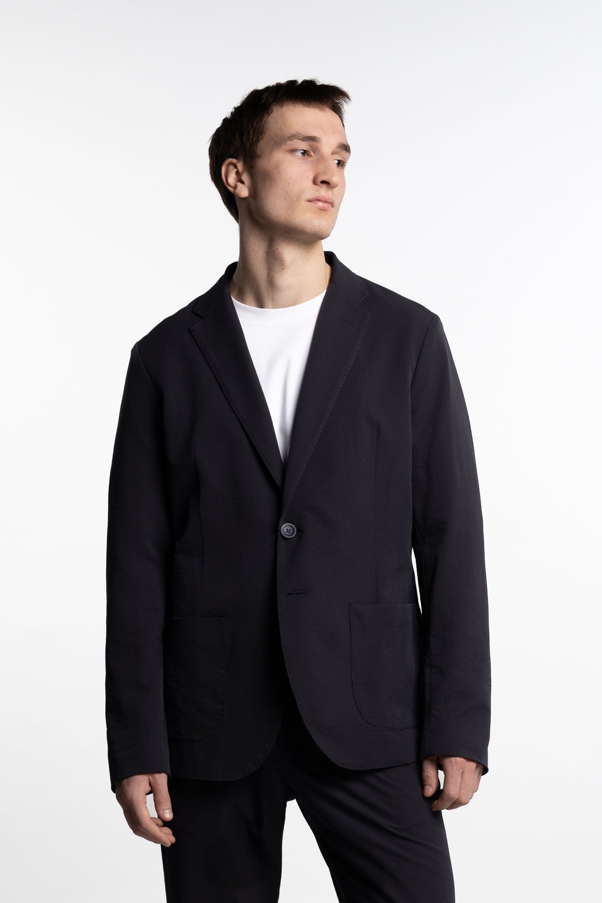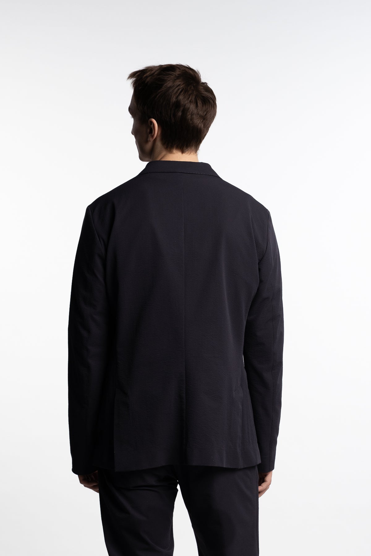 Blazer i teknisk stretch-seersucker-stoff. Lett og uforet, designet kombinerer avslappet eleganse med en sommerlig følelse.