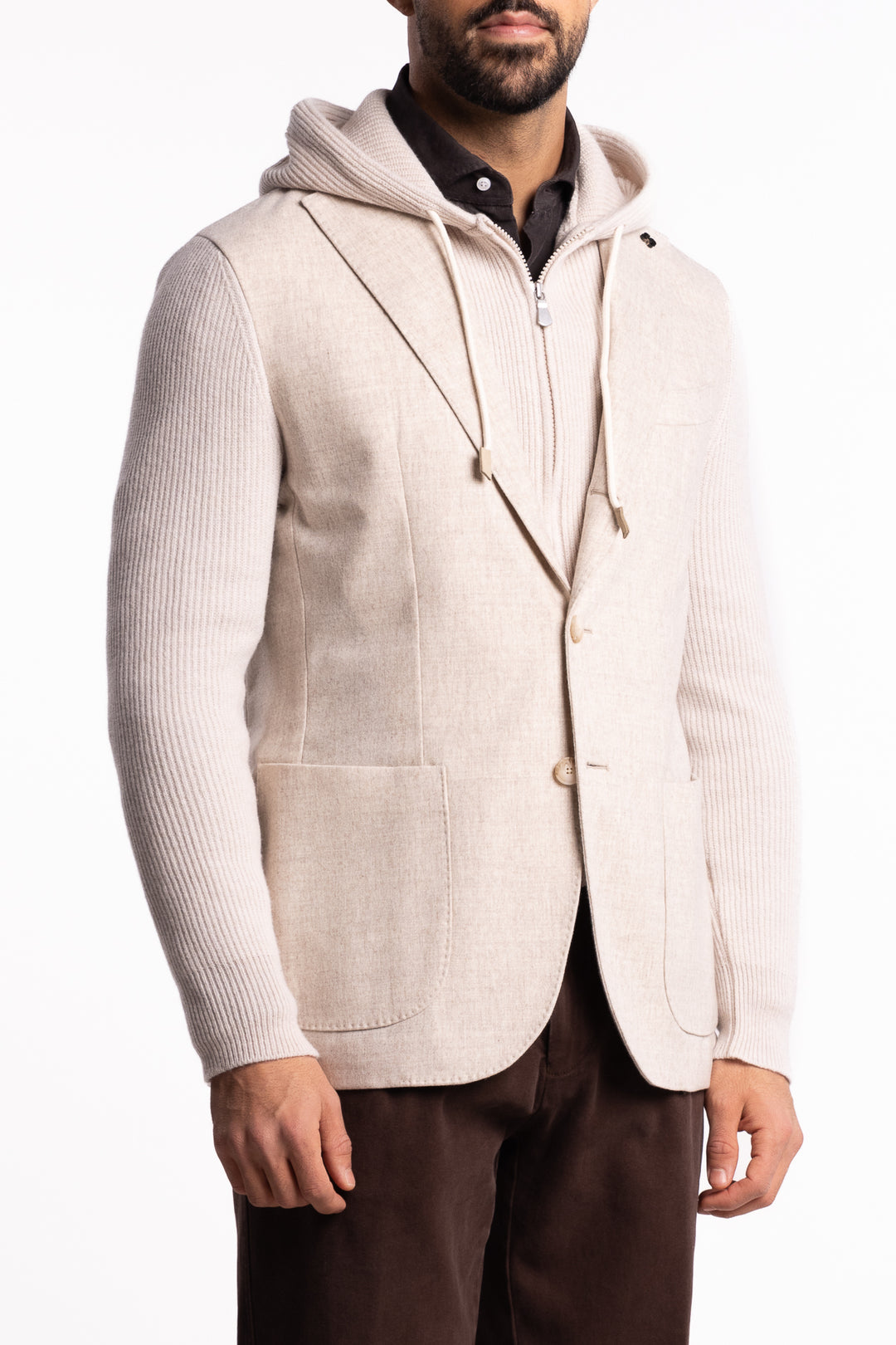 Knitted Hooded Wool Blazer Beige