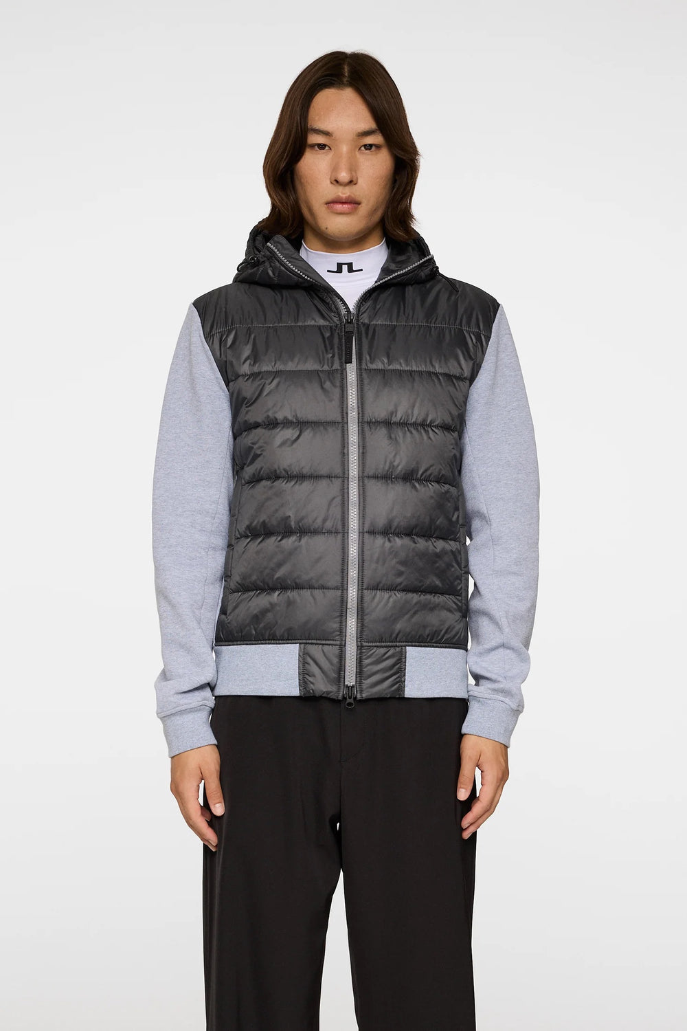 Seth Hybrid Zip Hood Medium Grey Melange