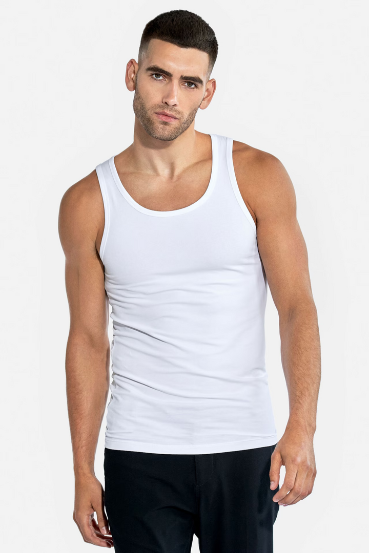 2-Pack Tank fra Bread & Boxers. En klassisk singlet laget av elastisk bomull. Passformen er slank, i tillegg til at singleten har ekstra lengde slik at den holder seg på plass under en t-skjorte.