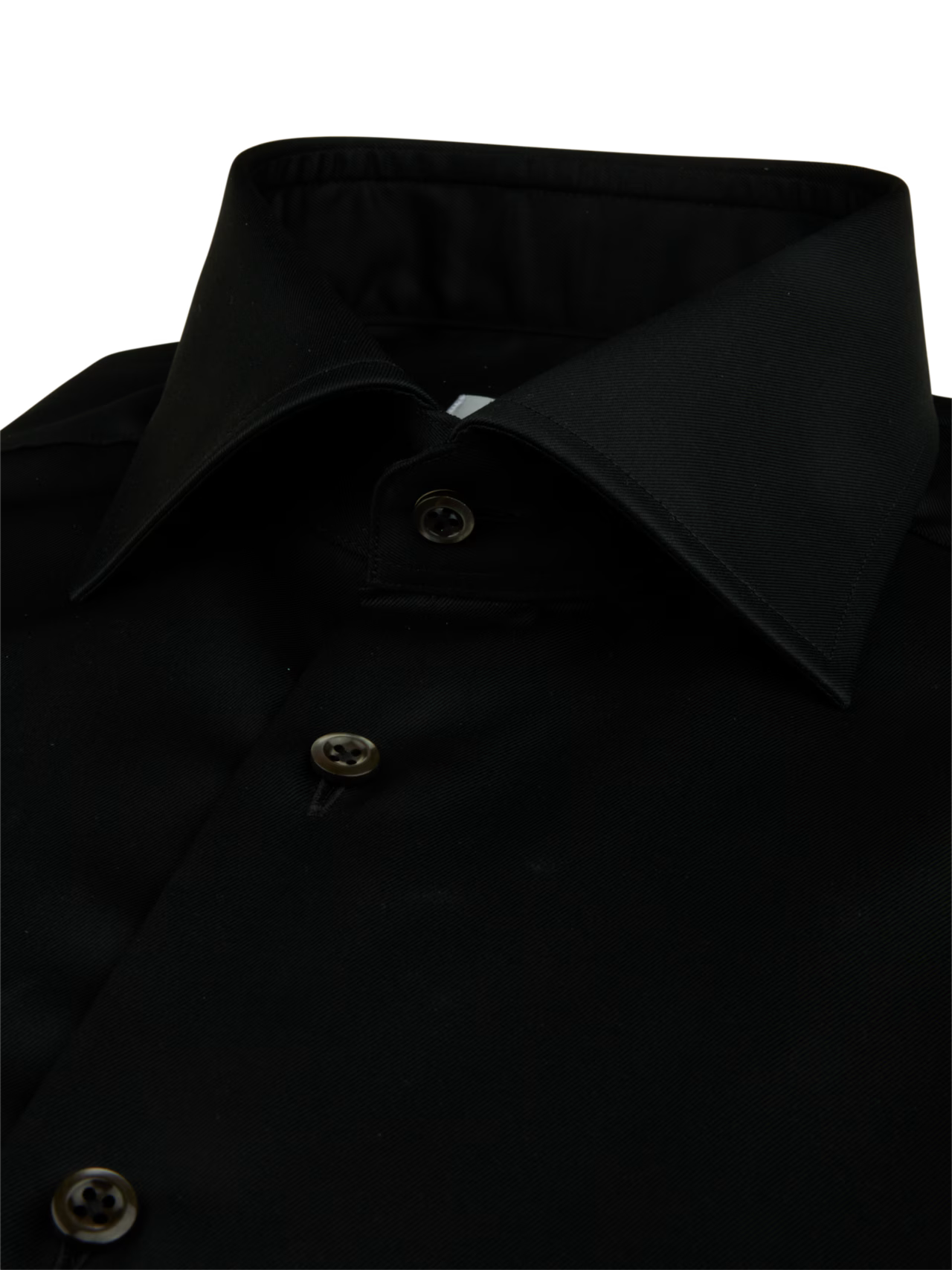 Black Twill Shirt fra Stenströms er en elegant skjorte laget av twofold-bomull i en overlegen twillkvalitet med jevn og myk struktur. Modellen har moderat cut away-krage (No. 77), enkel mansjett og perlemorsknapper.