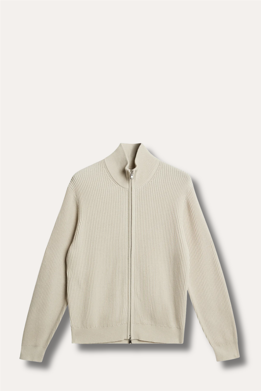 Rib Knitted L/ S V-Neck Polo Pearl White