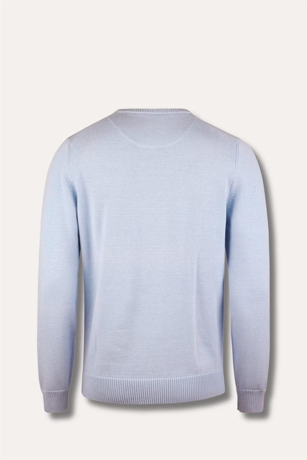 Sweater Knitted Crew Neck Organic Cotton Light Blue