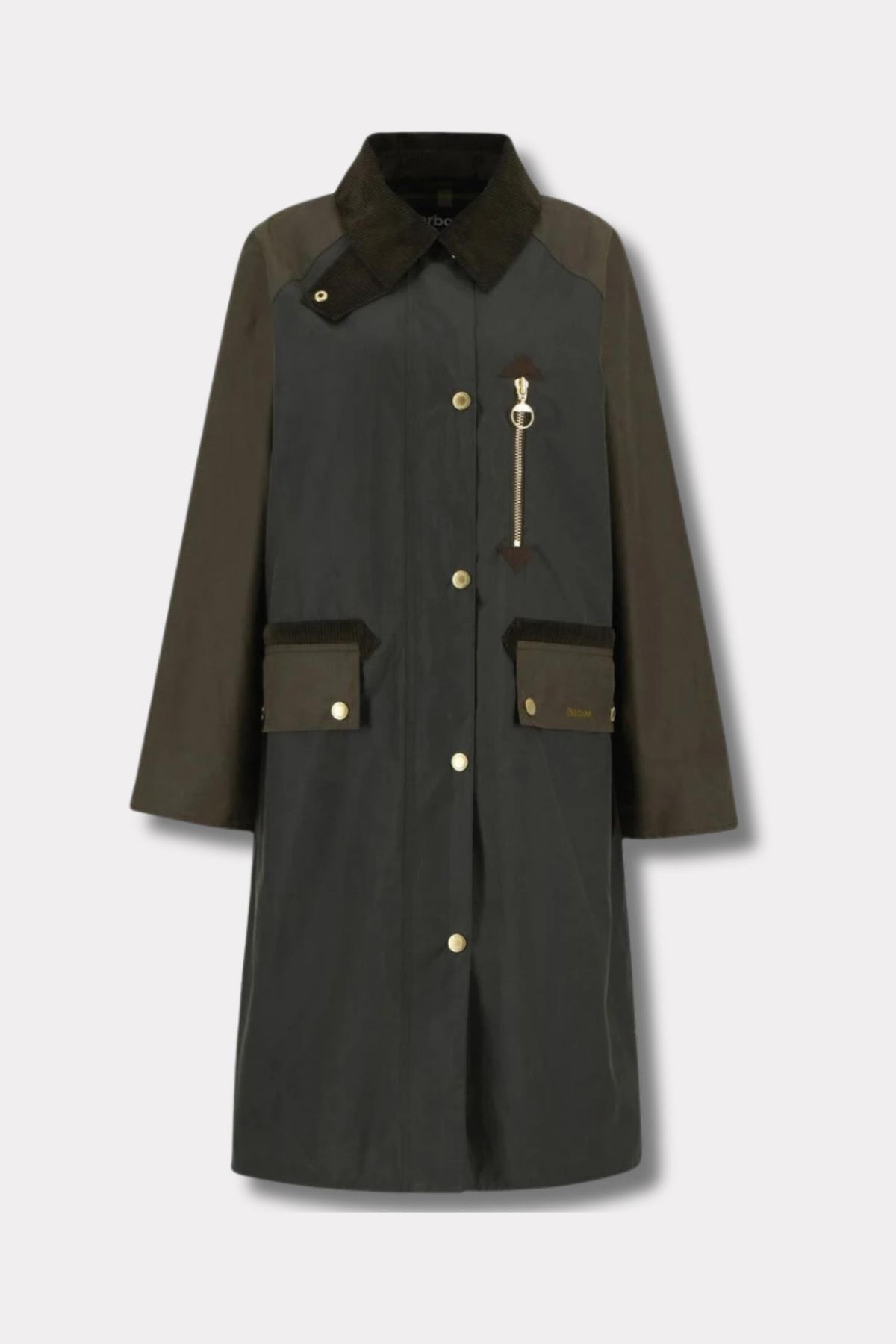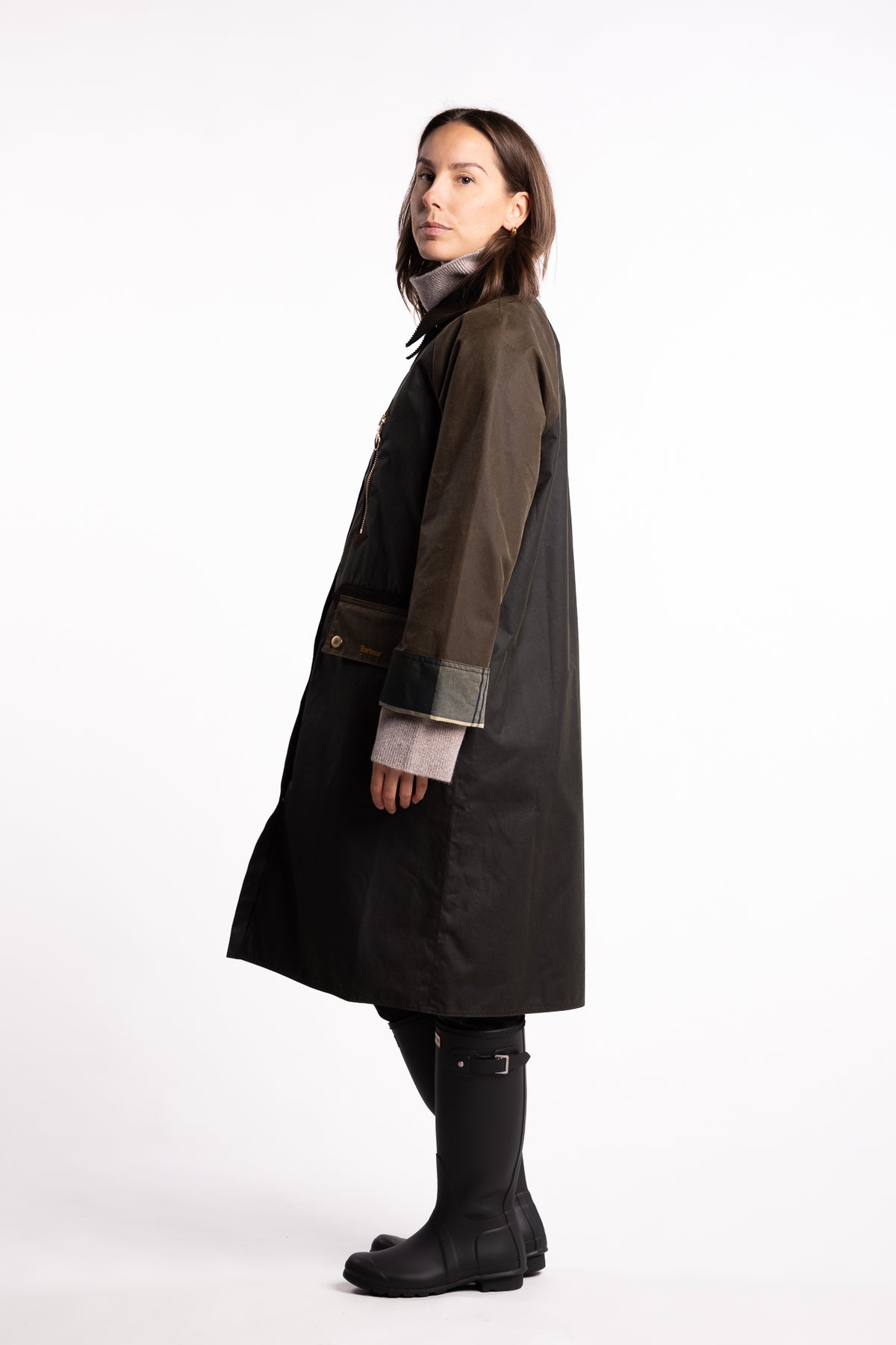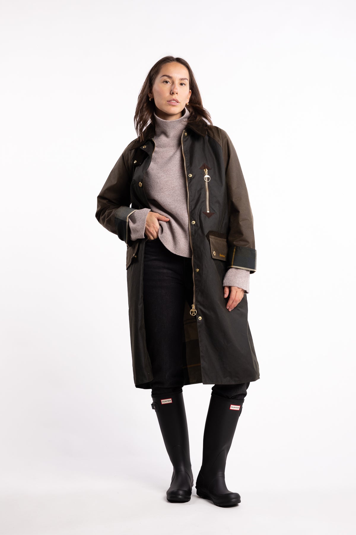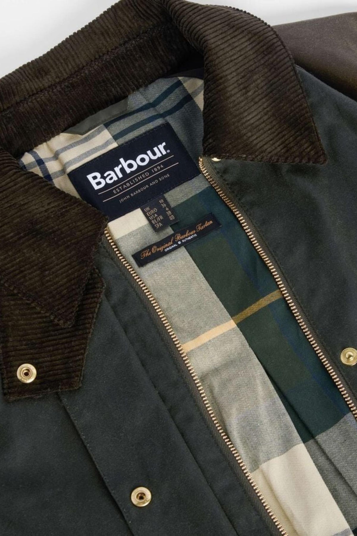 Det slitesterke ytterskallet i vokset bomull gir både struktur og en naturlig, værbitt patina over tid. Innsiden er fôret med Barbours ikoniske tartanmønster, som også vises diskret i mansjettene. Praktiske detaljer som to frontlommer med logo, romslige innerlommer, cordfløyelskrage og en beskyttende hette gjør dette til en komplett hverdagskåpe med tidløs appell. Den dype folden bak sikrer god bevegelighet, enten du er i byen eller på landet.