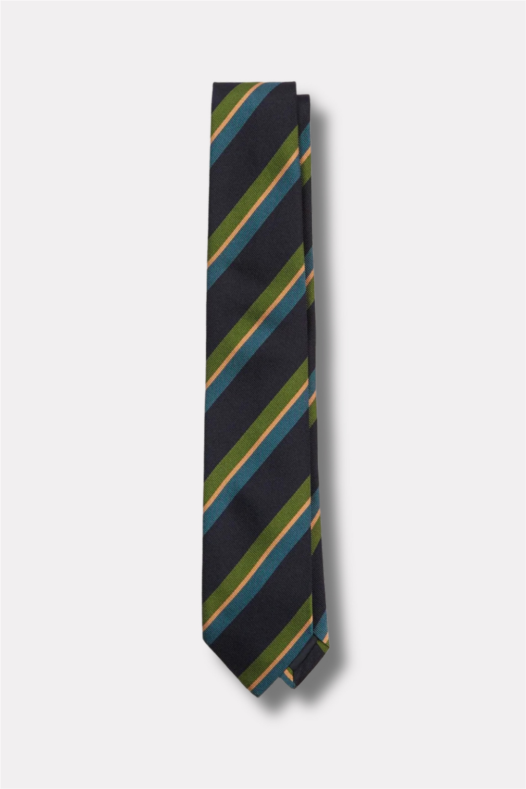 Sandwich Stripe Reppe Silk Tie Navy, Green & Blue