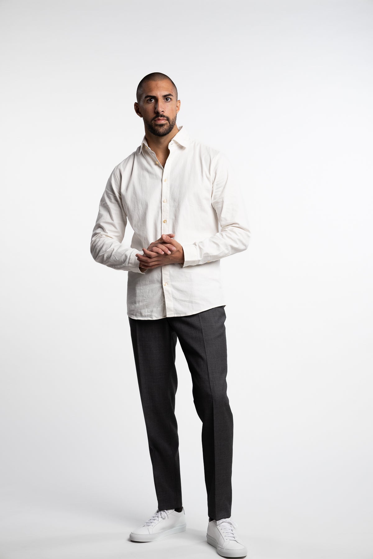 Myk skjorte med denim-look, laget av en bomullsblanding med stretch for ekstra komfort og bevegelsesfrihet. Skjorten har en klassisk krage og en liten logopatch nederst til venstre.