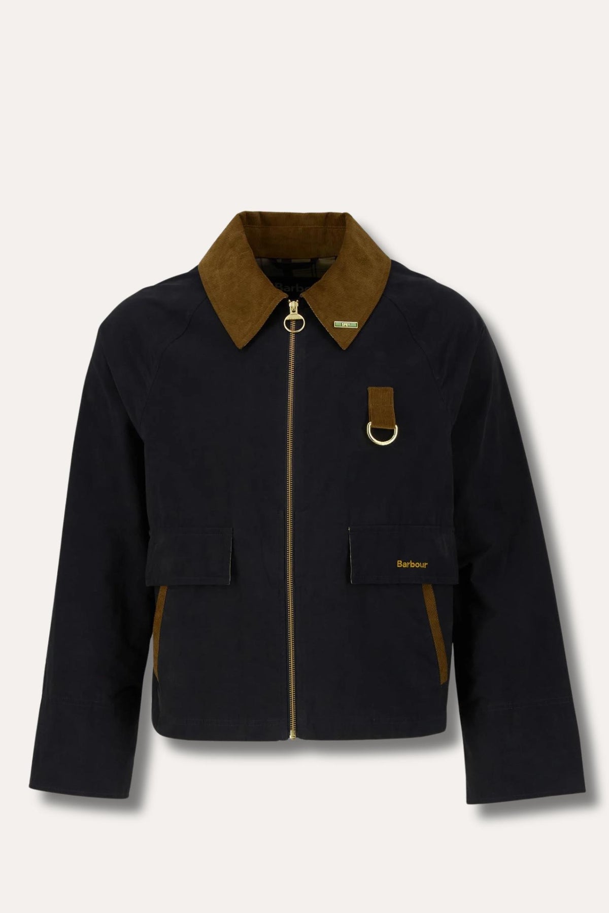 Icons Spey Showerproof Jacket fra Barbour er en moderne tolkning av den ikoniske Spey-silhuetten. Modellen har en avslappet passform med kortere lengde og et tydelig heritage-uttrykk. Den halvmåneformede kordfløyelskragen, klassisk throat guard og cord-detaljer gir jakken den karakteristiske Barbour-signaturen.