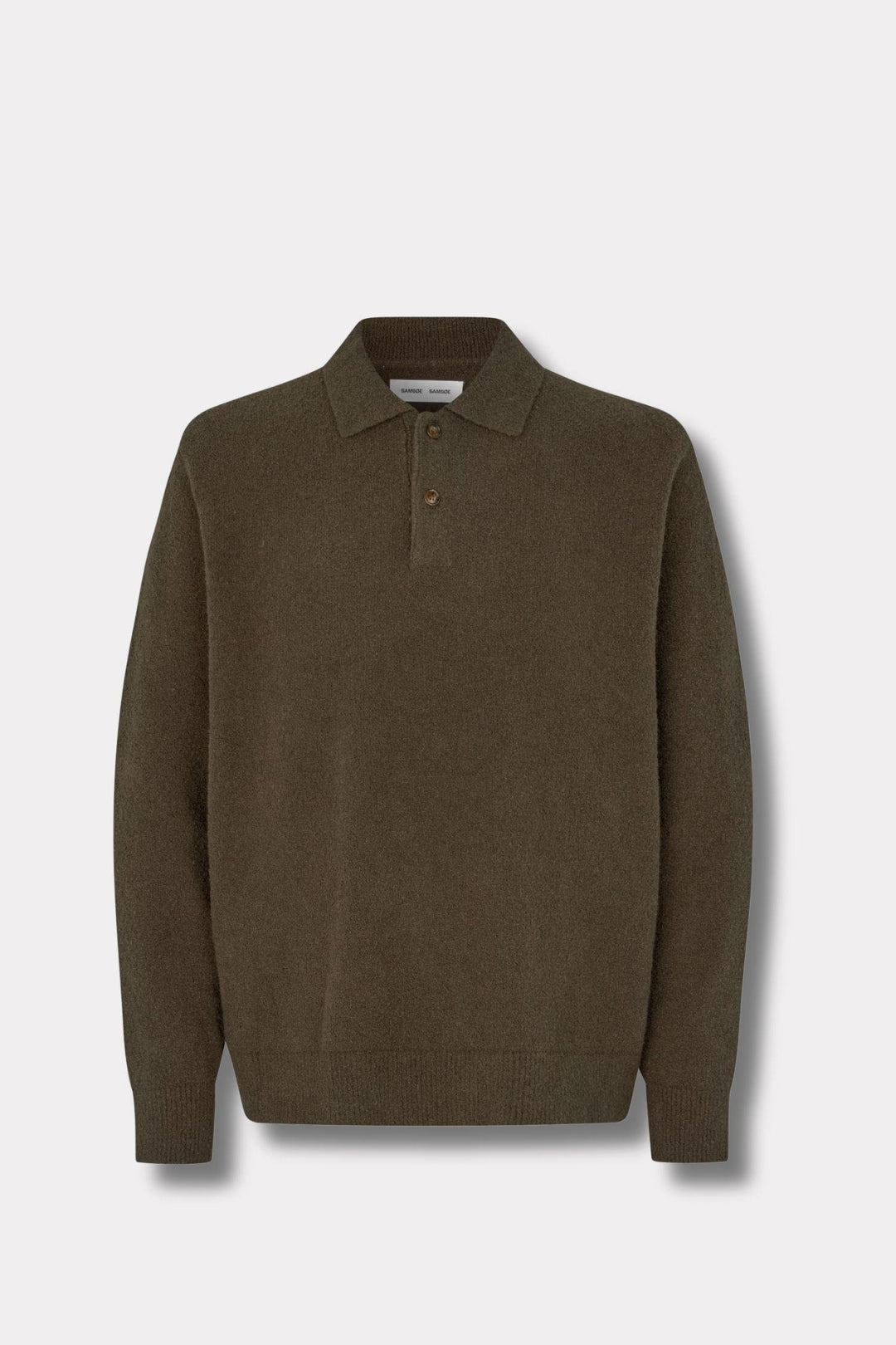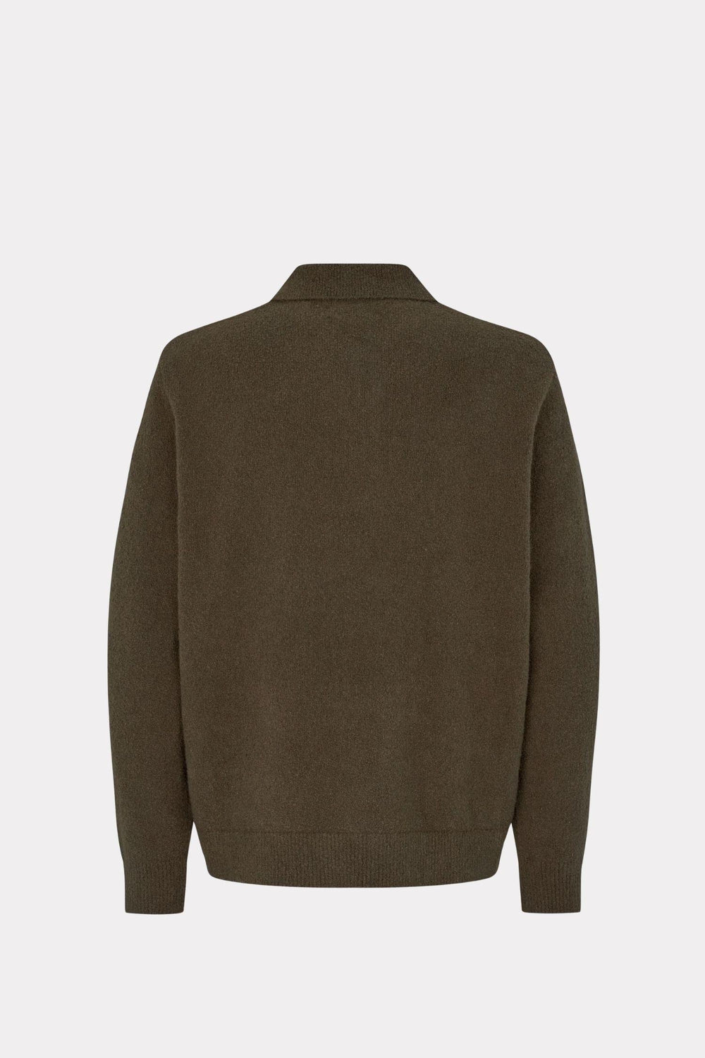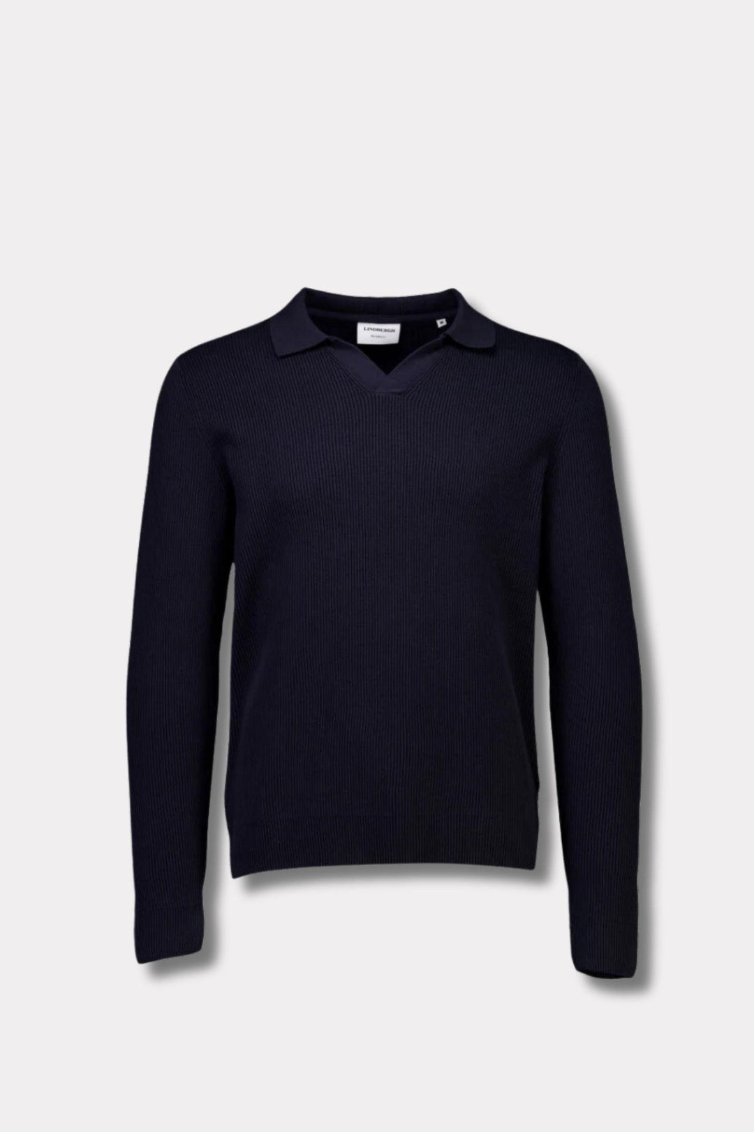 Rib Knitted L/ S V-Neck Polo Lt Stone Grey