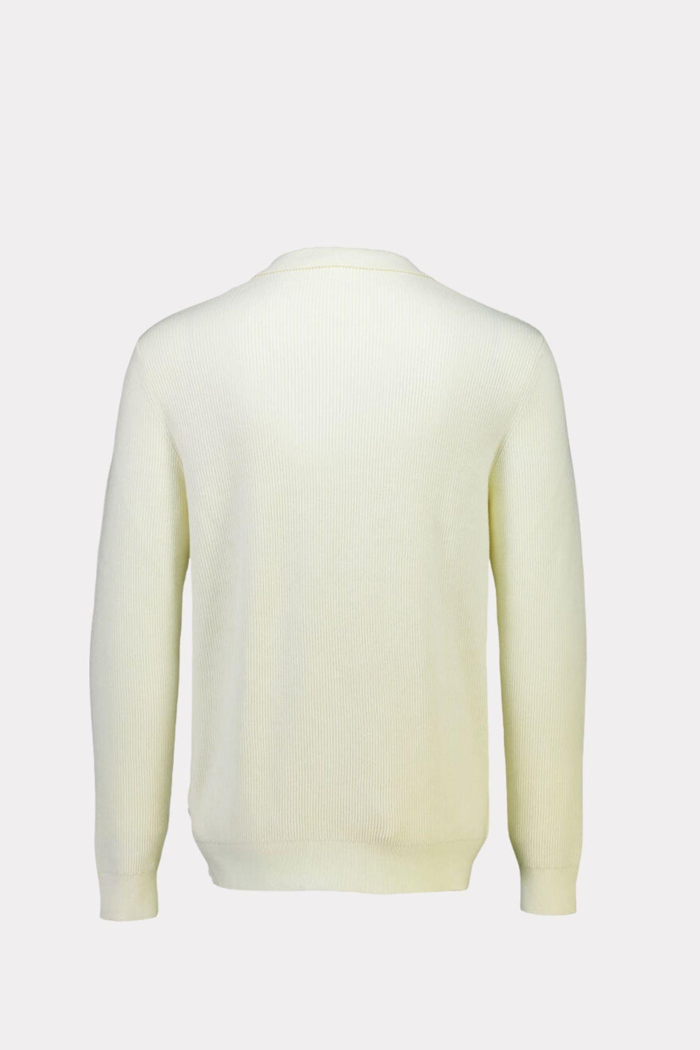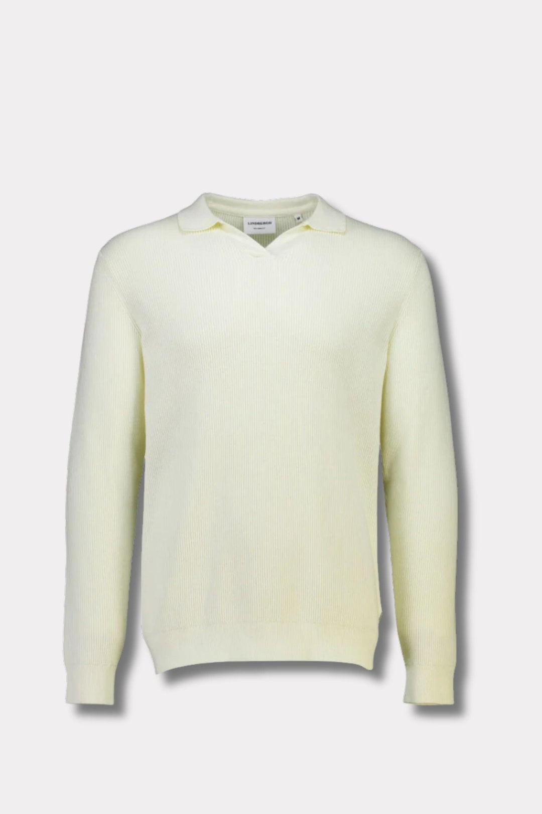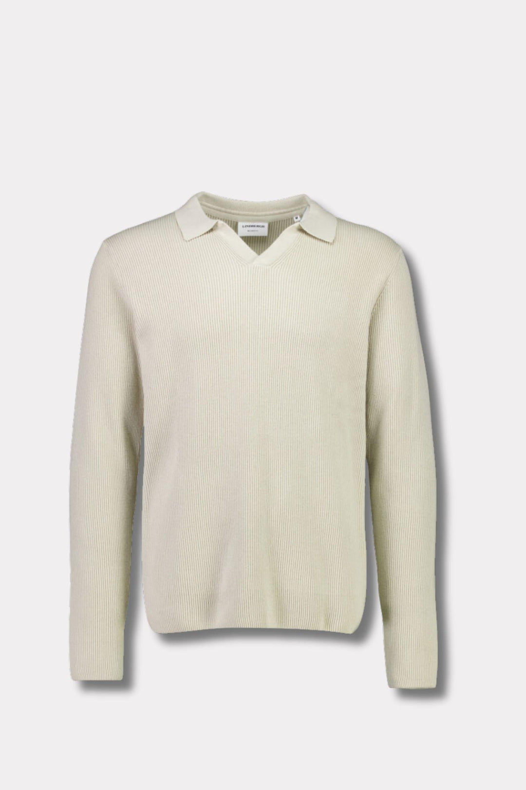 Rib Knitted L/ S V-Neck Polo Pearl White