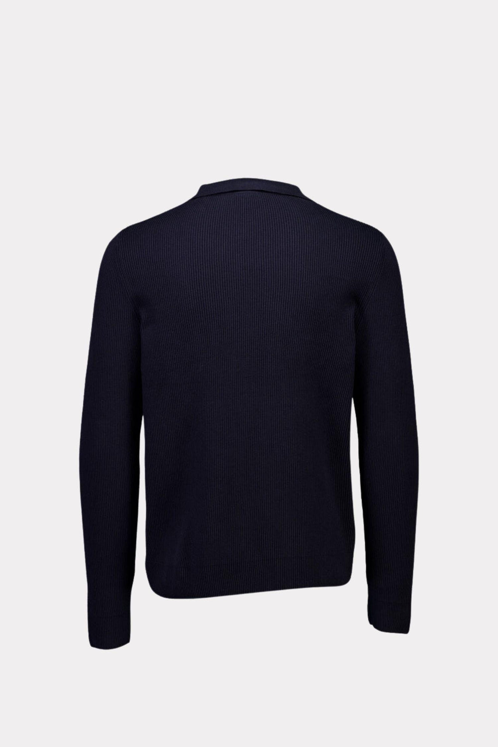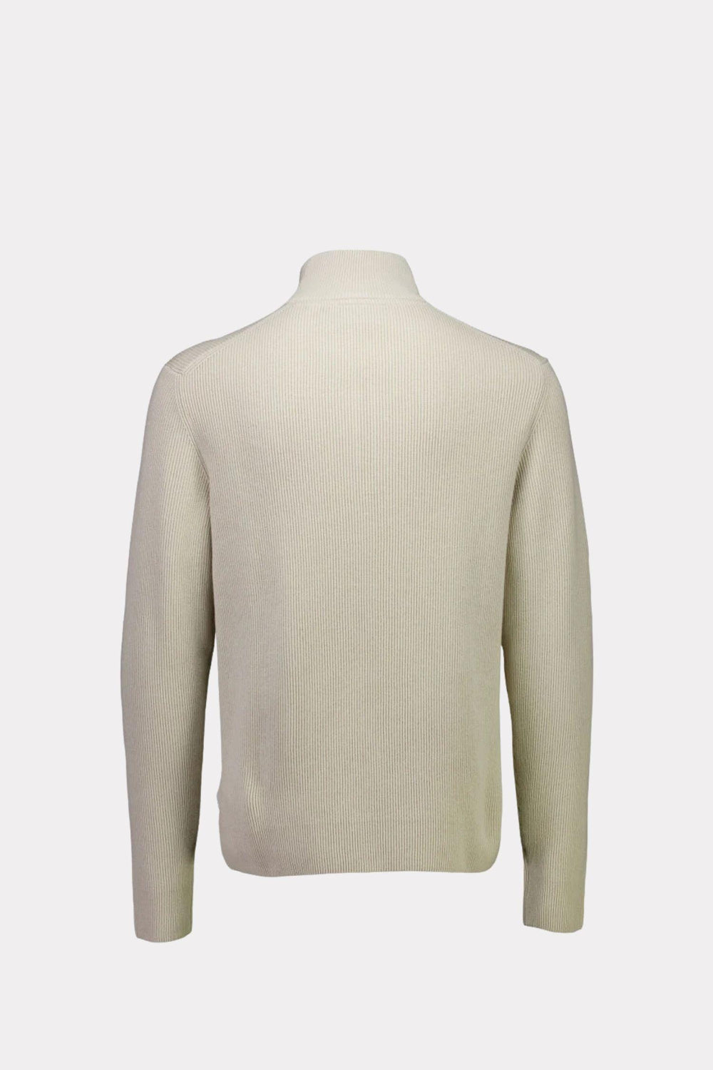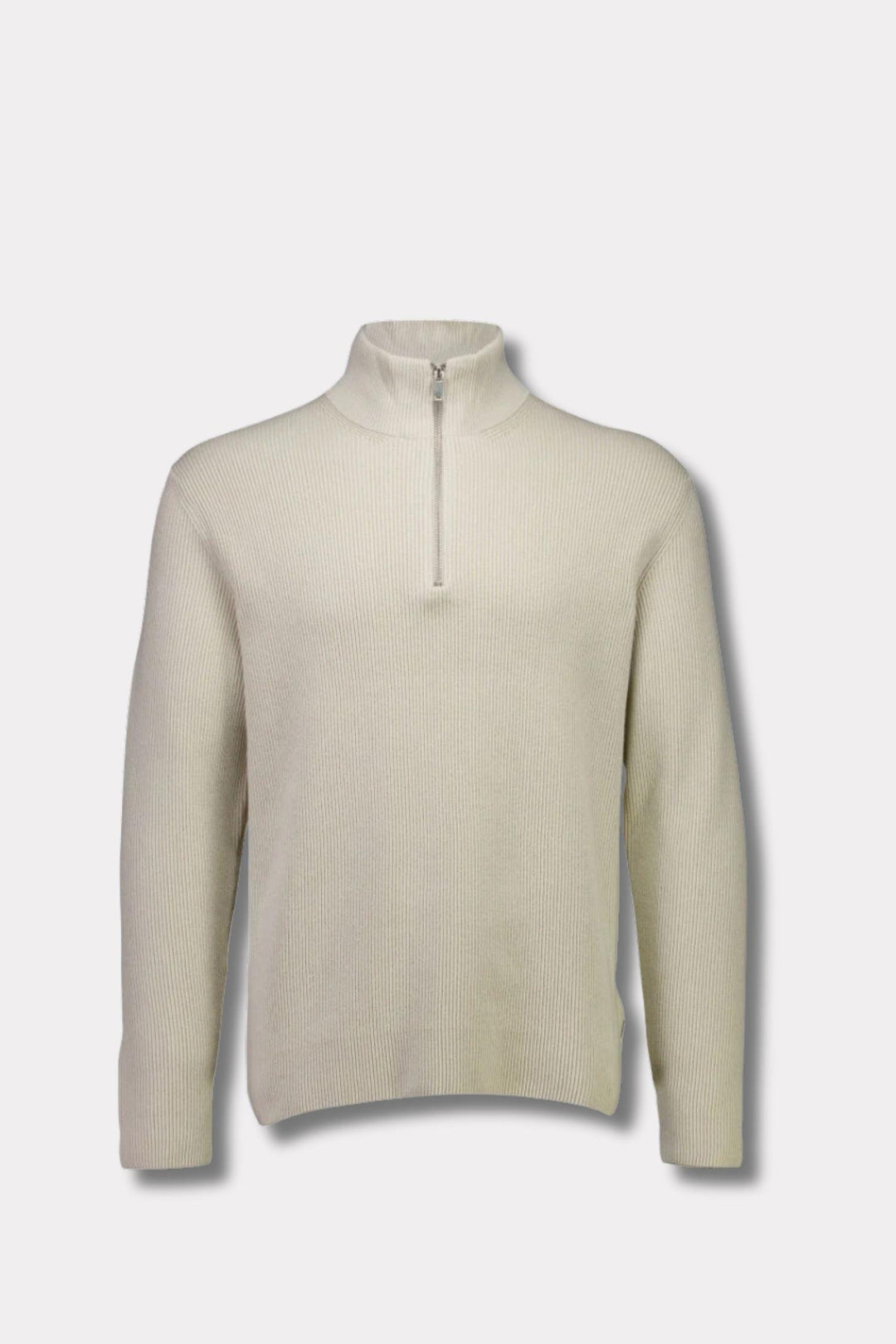 Rib Knitted L/ S V-Neck Polo Pearl White