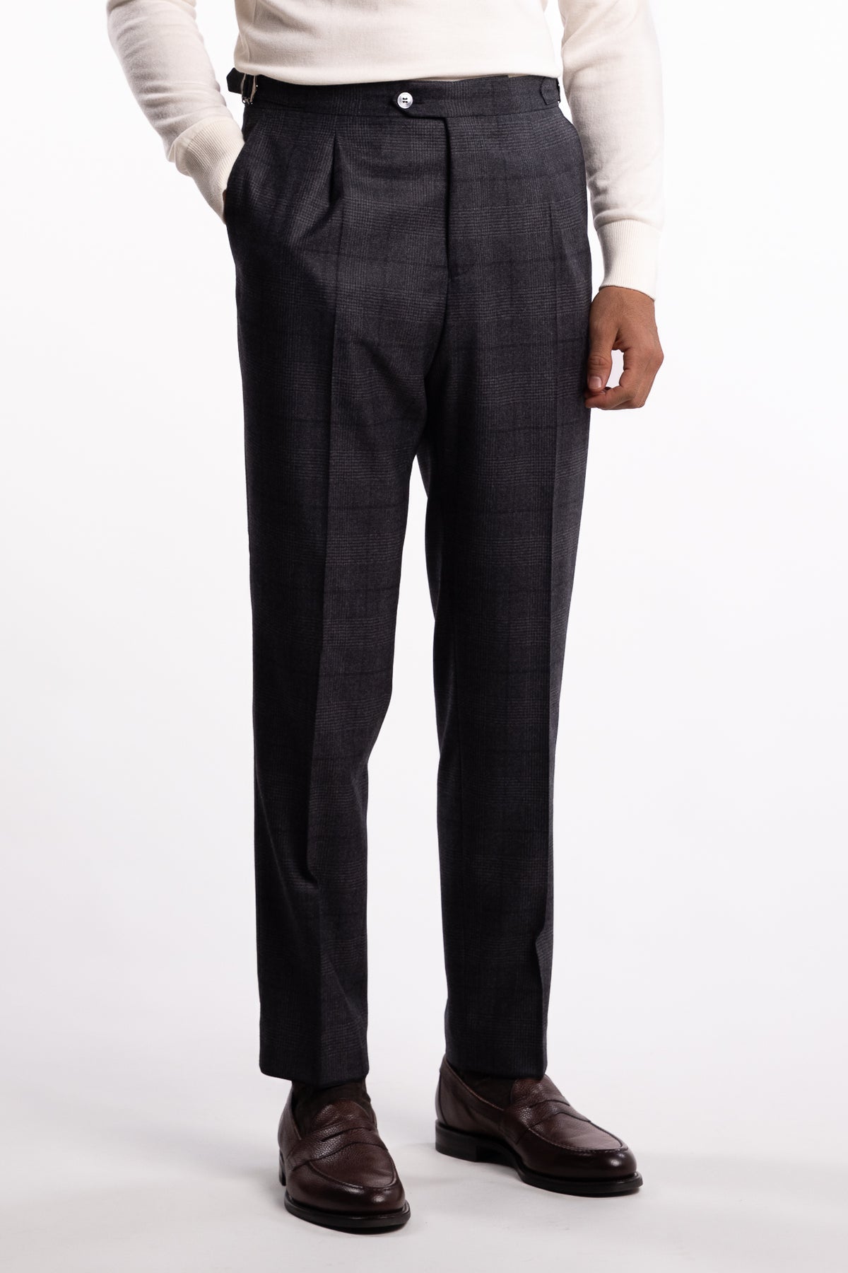 En tidløs dressbukse laget i myk flanell av 100 % ull. Buksen har en klassisk silhuett med enkelt fold i front, justerbare sidehemper og midwaist som gir en elegant og behagelig passform. Perfekt både til hverdags og mer formelle anledninger.