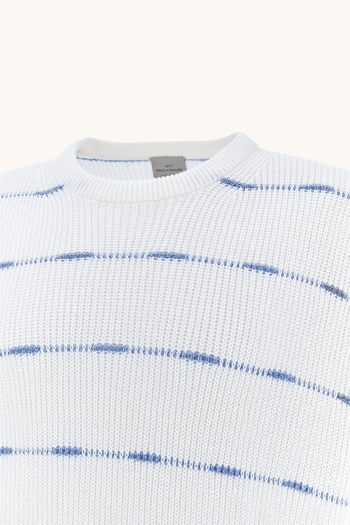 Paul & Shark Crew‑Neck Sweater Urukai i Urukai er en lett og luftig genser som kombinerer linens friskhet med bomullens mykhet. Den strikkede intarsia‑stripen gir et sofistikert uttrykk, mens ribbestrikket krage, mansjetter og nederkant fullfører det klassiske designet. Perfekt for både hverdag og mer formelle anledninger med en komfortabel og balansert passform.